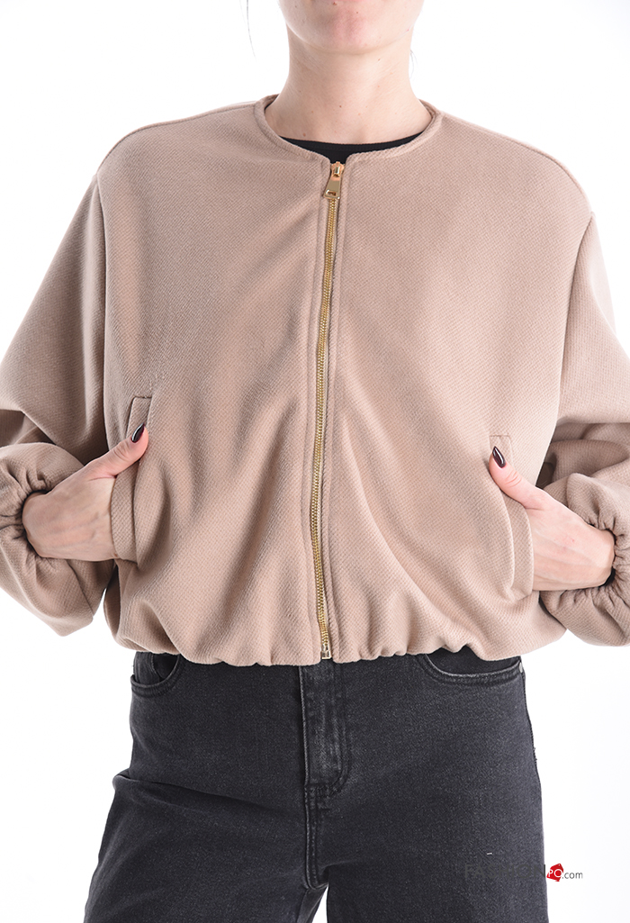long sleeve crew neck Bomber Jacket with pockets with elastic with zip