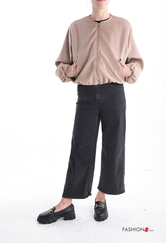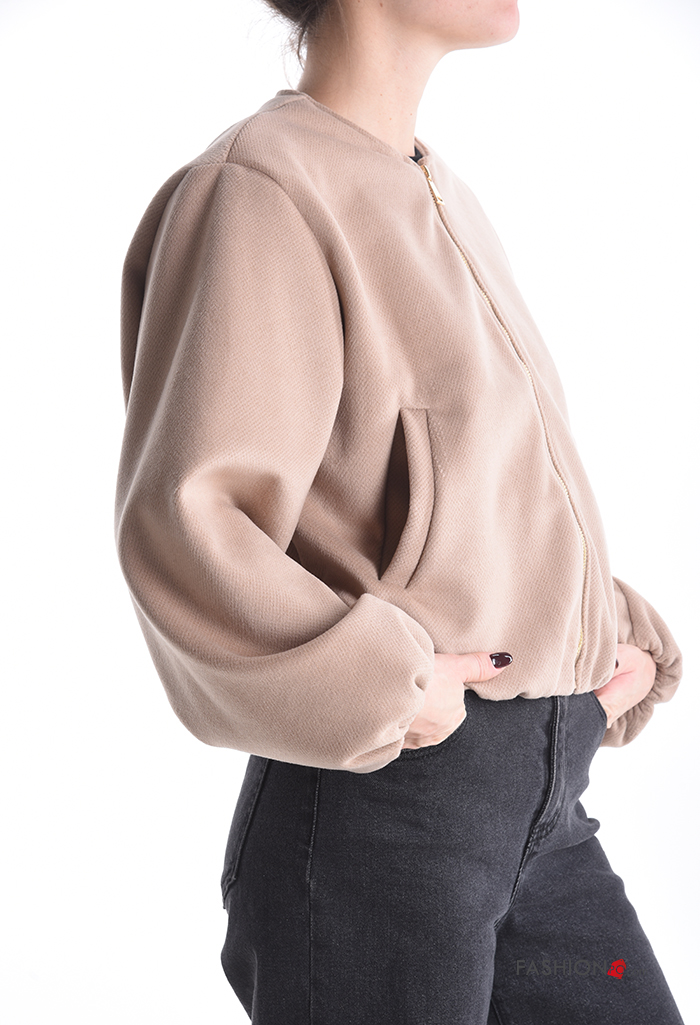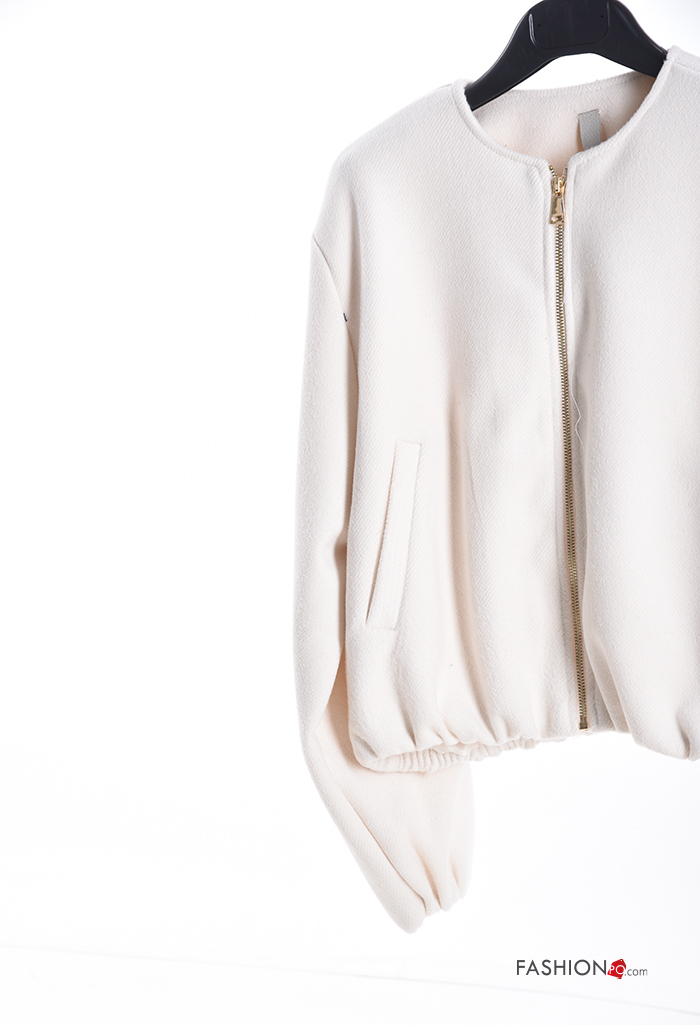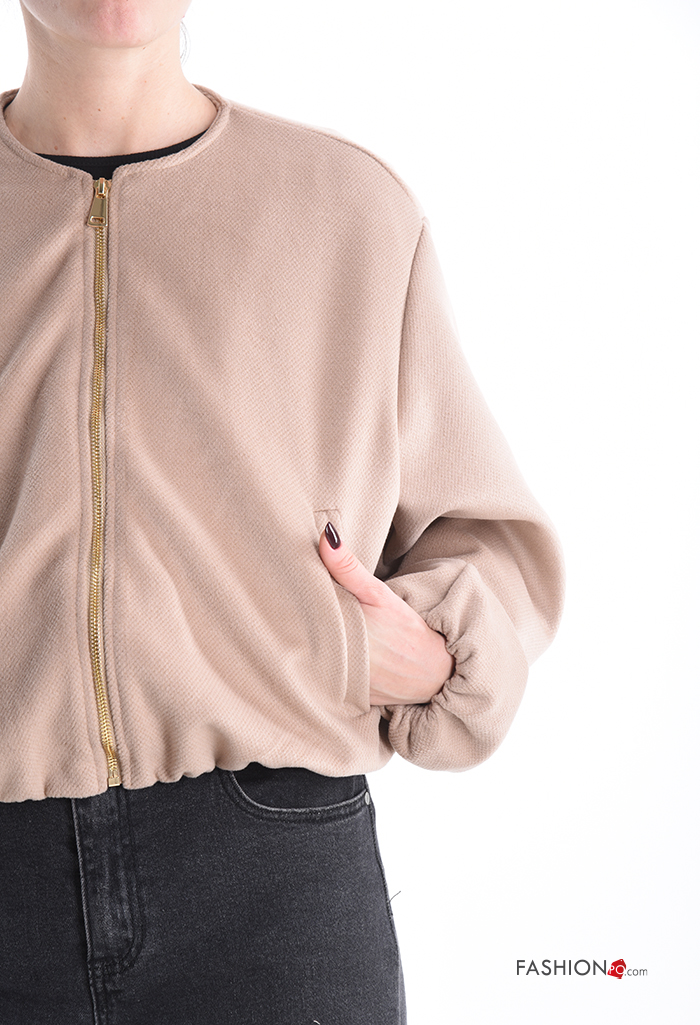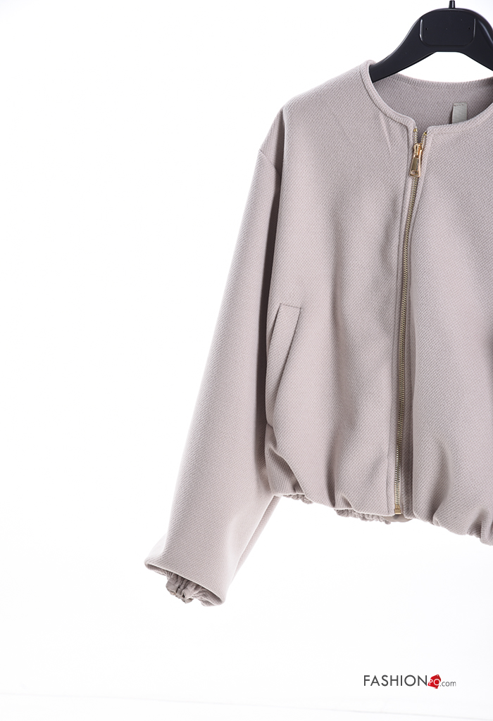 Home > Clothing > Coats & Jackets > long sleeve crew neck Bomber Jacket with pockets with elastic with zip