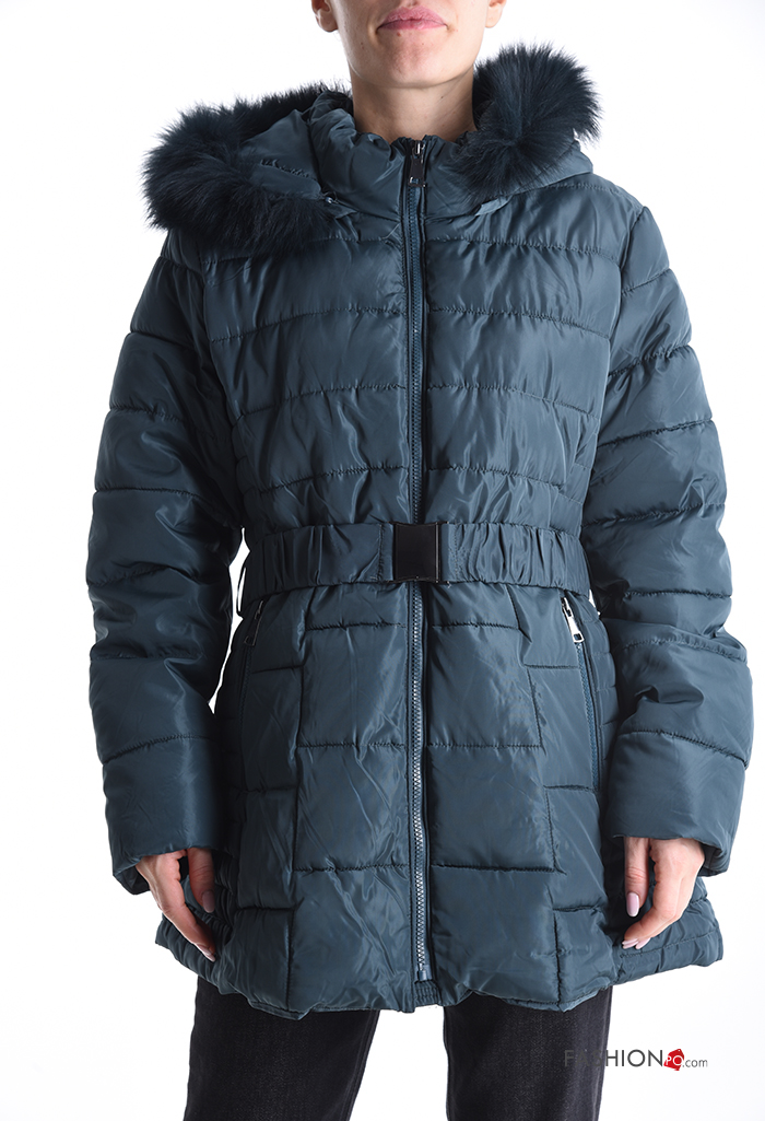 Home > Clothing > Coats & Jackets > faux fur Puffer Jacket with belt with pockets with hood with zip