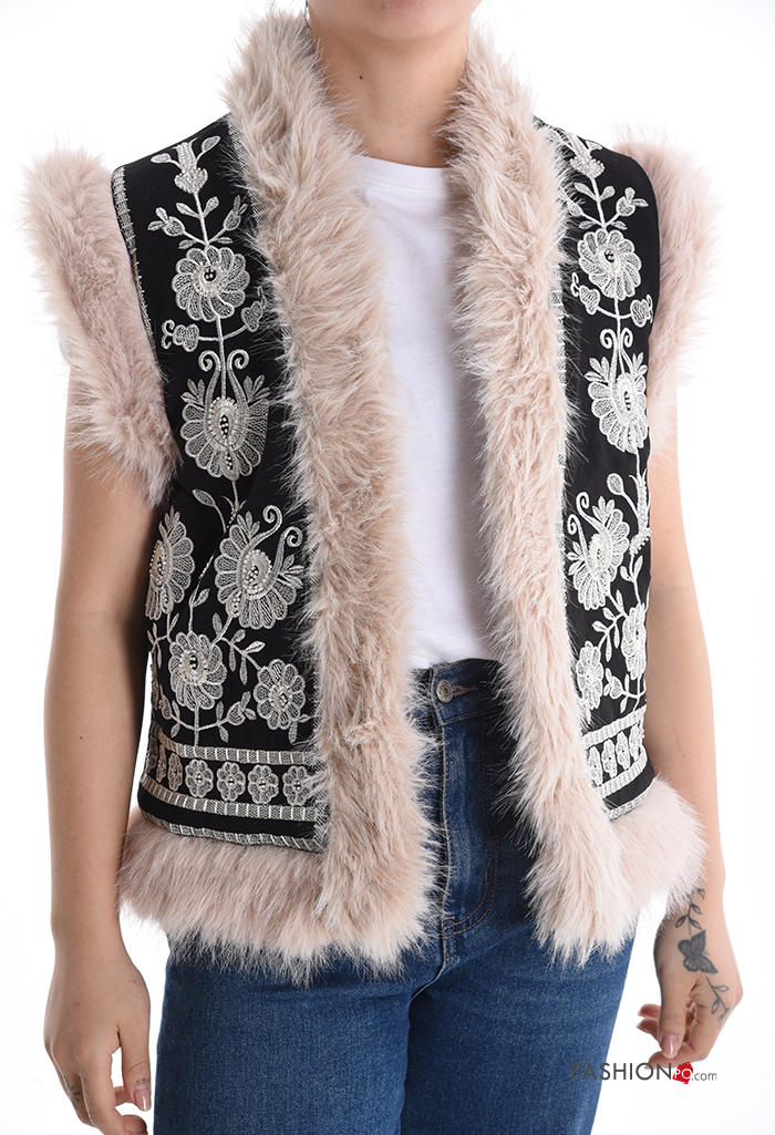 Embroidered faux fur Gilet with lining