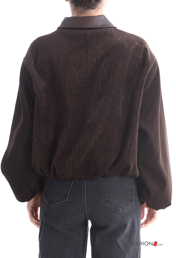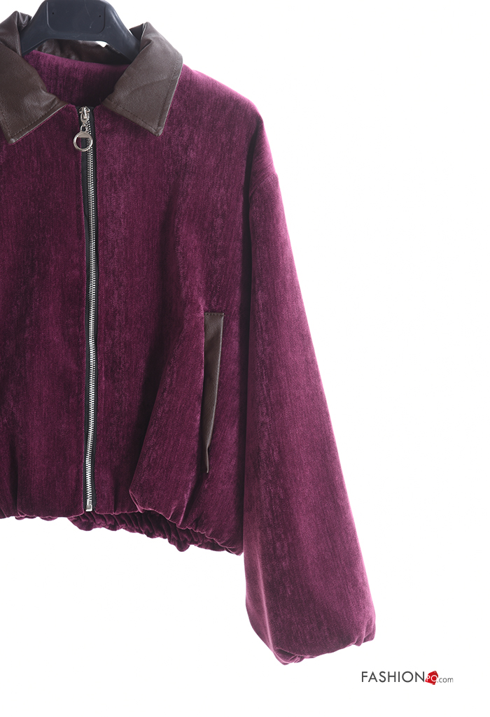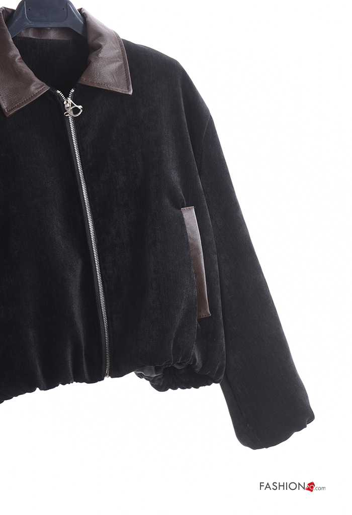 long sleeve with collar faux leather Jacket with pockets with zip