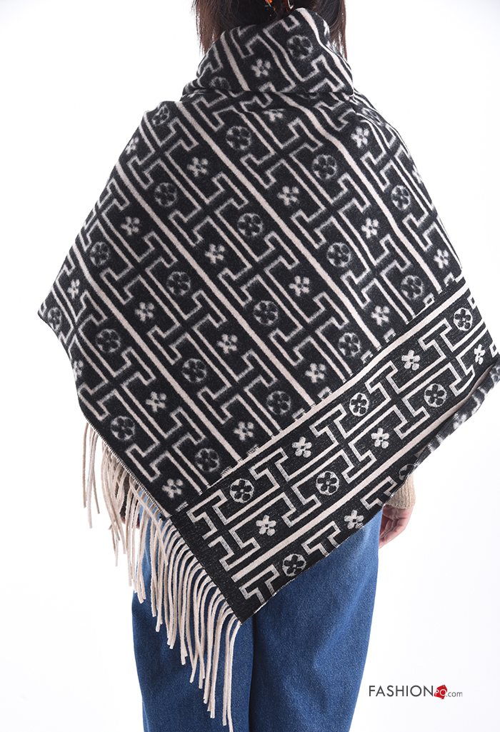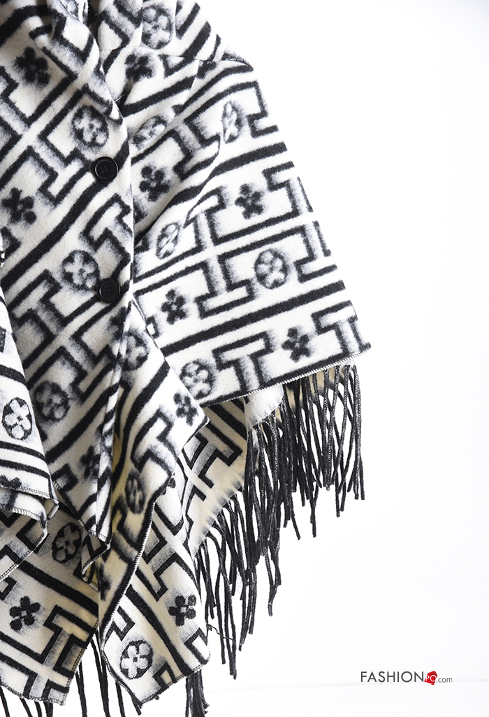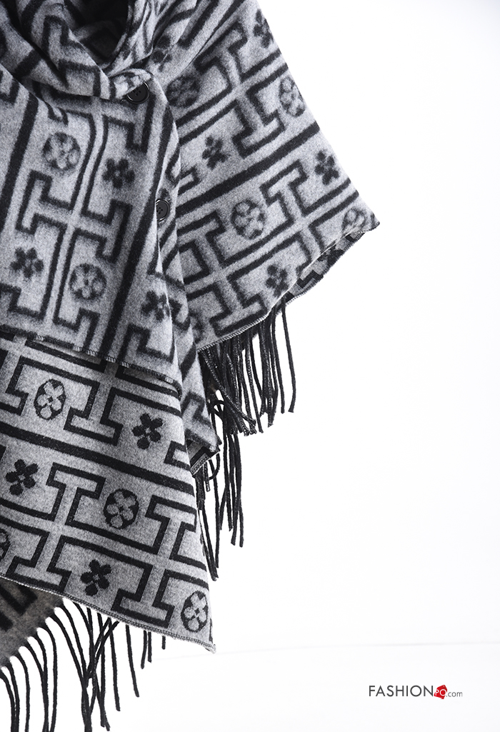 Poncho Rollneck with fringe with buttons
