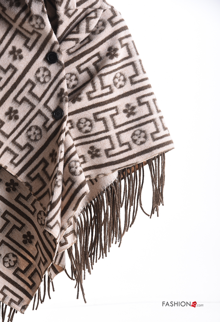 Home > Clothing > Coats & Jackets > Poncho Rollneck with fringe with buttons