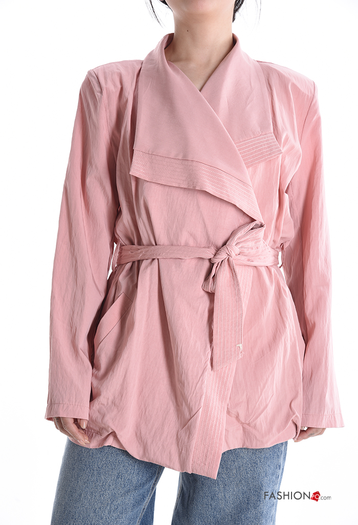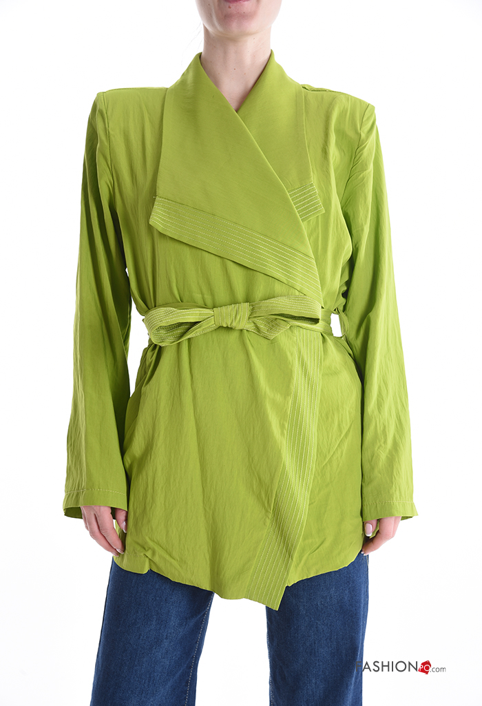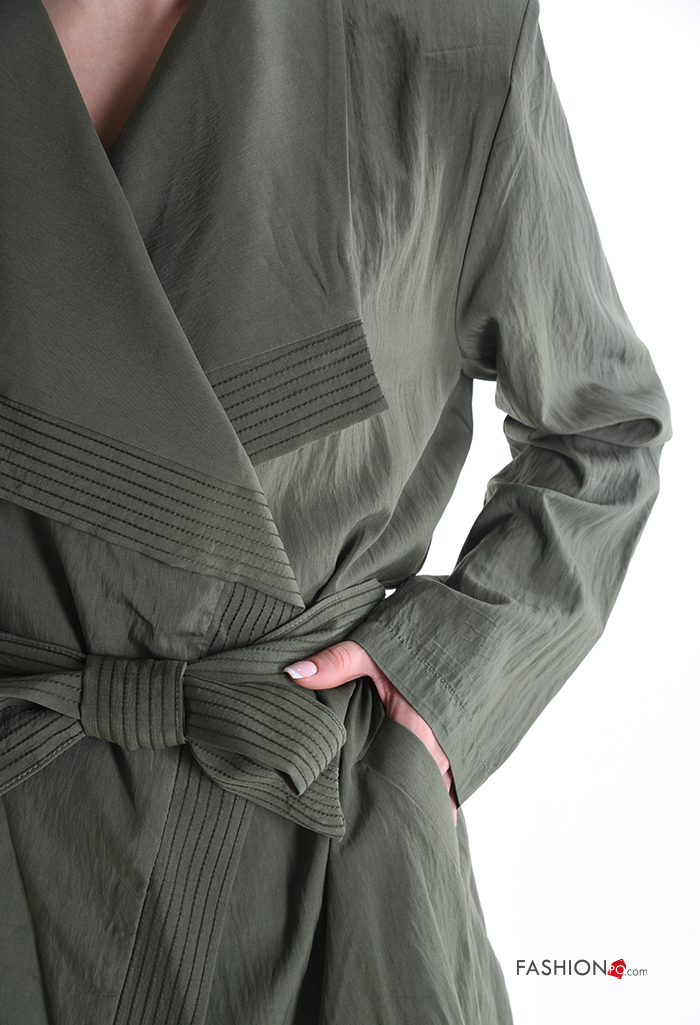 long sleeve Duster Coat with fabric belt with shoulder pads