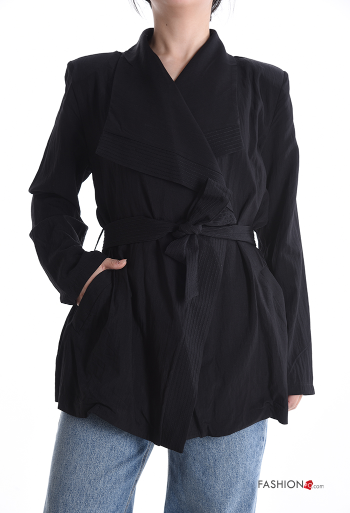 Home > Clothing > Coats & Jackets > long sleeve Duster Coat with fabric belt with shoulder pads