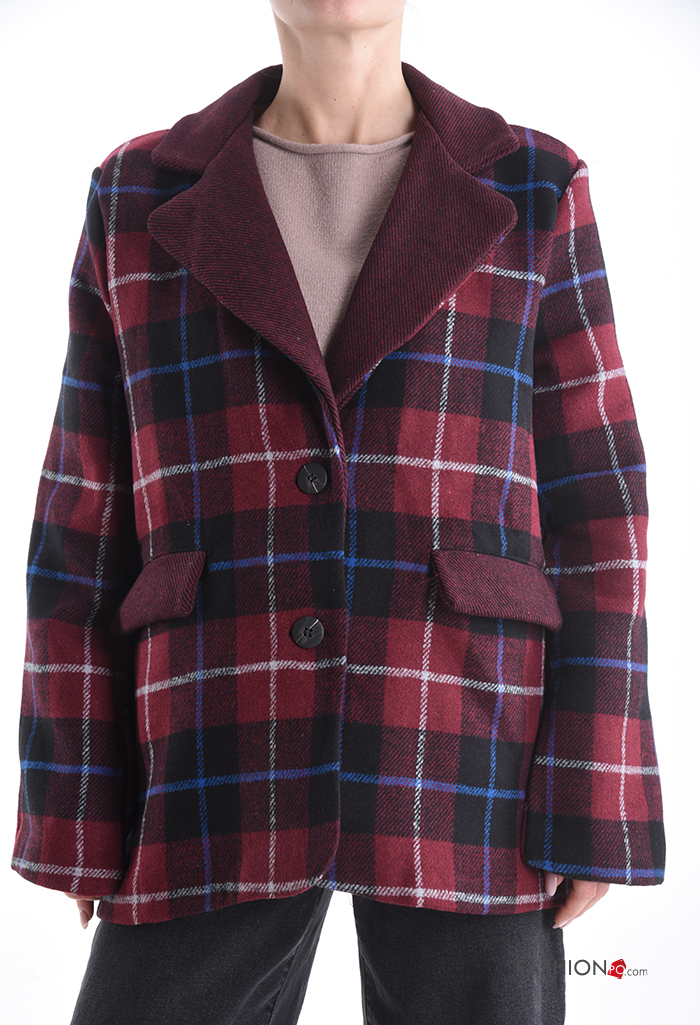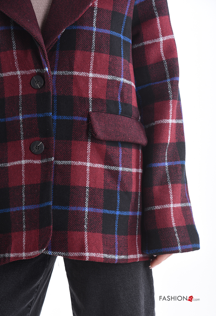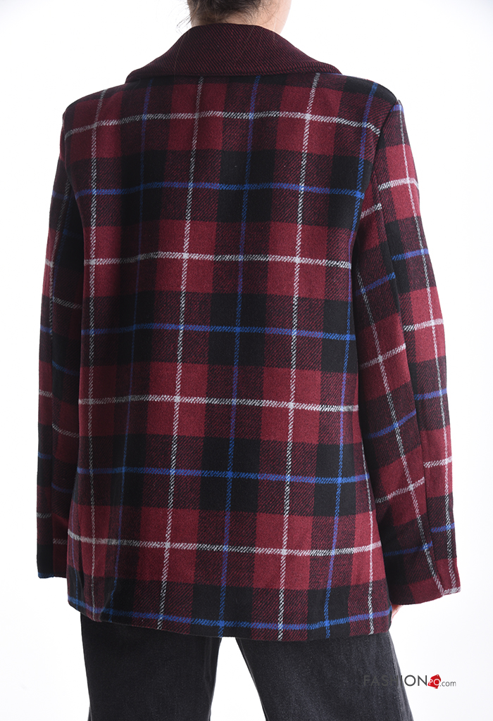 Tartan long sleeve Cotton Blazer with buttons with lining