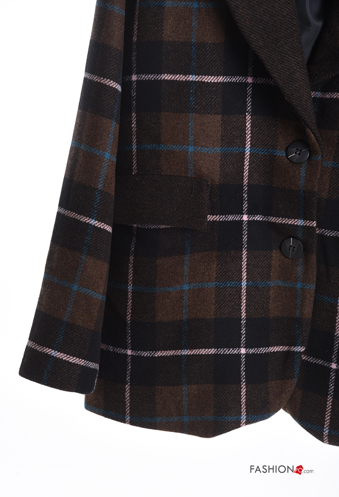 Home > Clothing > Coats & Jackets > Tartan long sleeve Cotton Blazer with buttons with lining