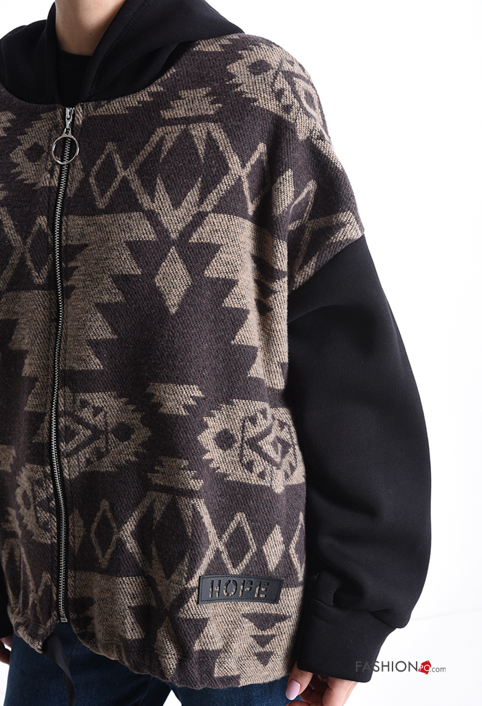 Home > Clothing > Coats & Jackets > Patterned long sleeve Cotton Jacket with zip with hood