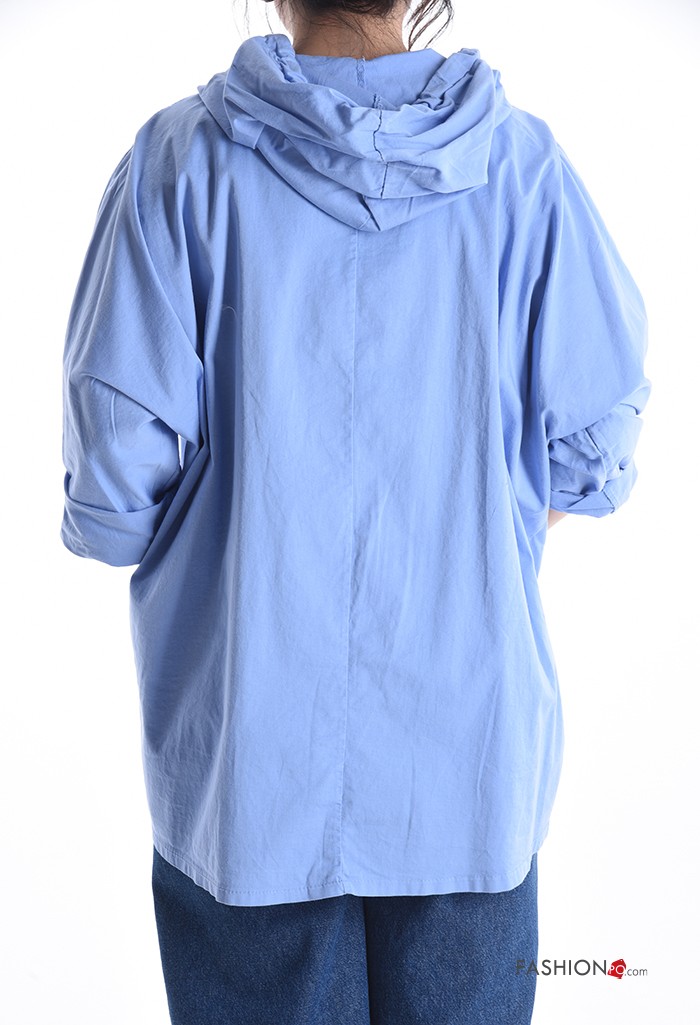 Cotton Jacket with hood 3/4 sleeve without lining with pockets with buttons