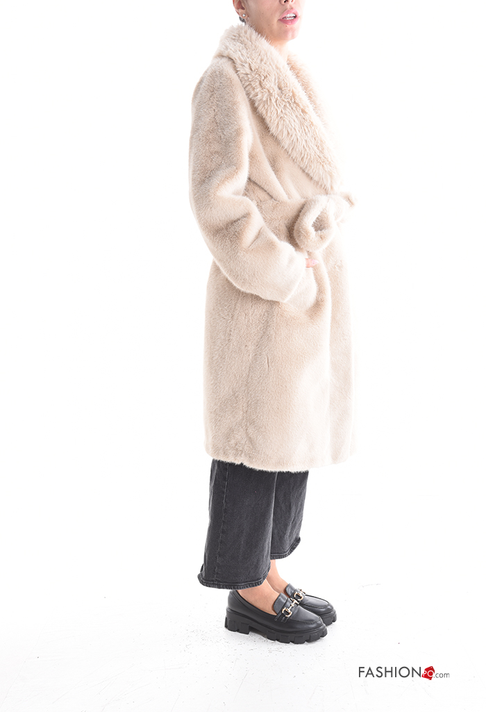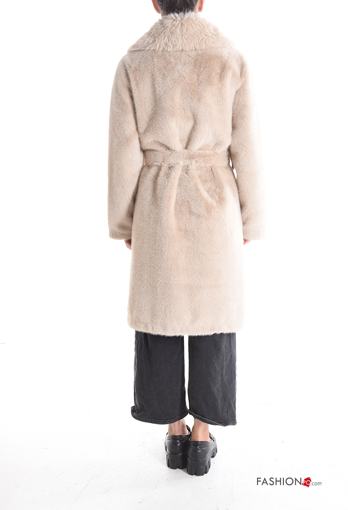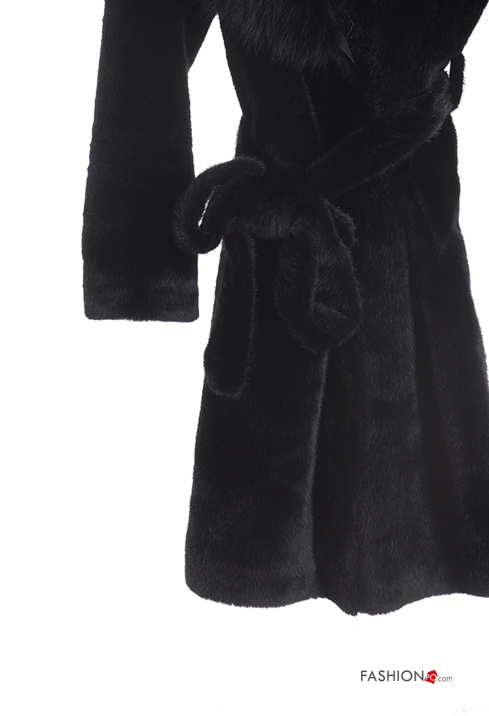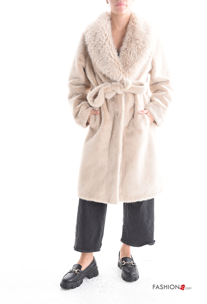 Home > Clothing > Coats & Jackets > faux fur with collar Coat with pockets with fabric belt