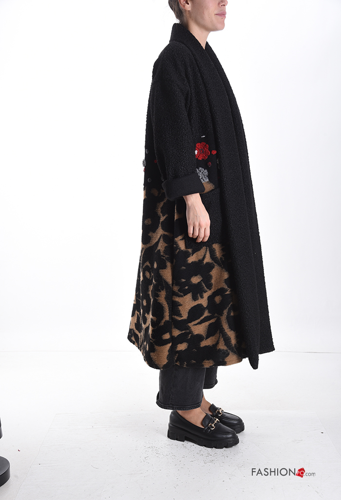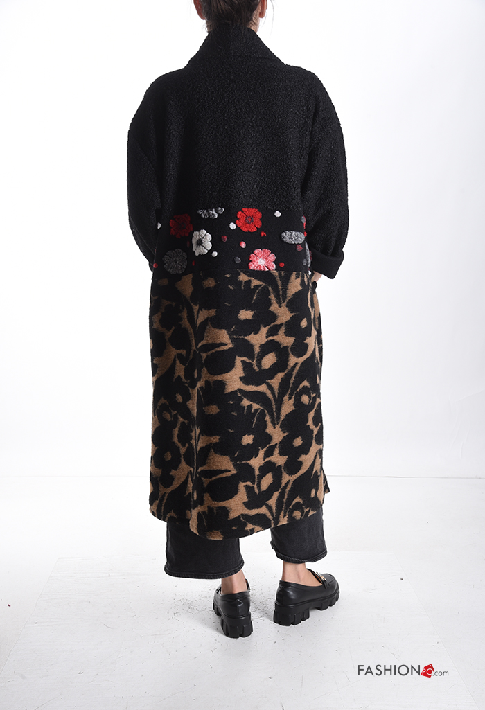 Home > Clothing > Coats & Jackets > Floral oversized Wool Mix Duster Coat with pockets