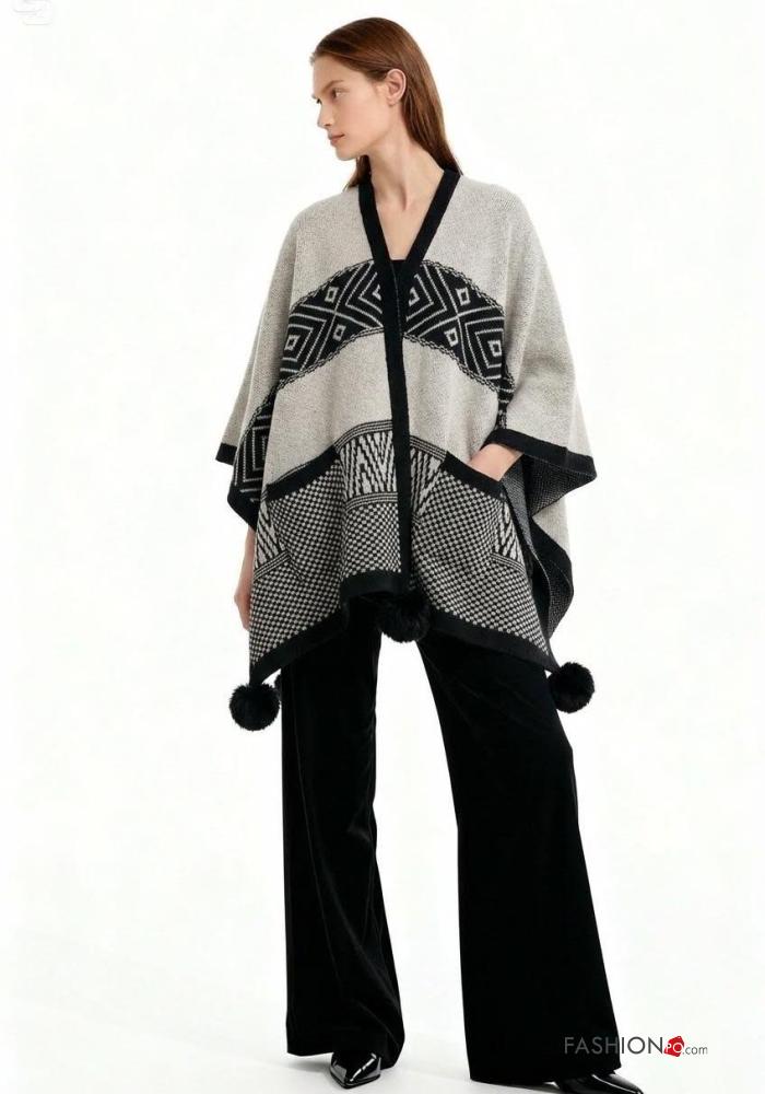 Home > Clothing > Coats & Jackets > Geometric pattern Cape with pockets