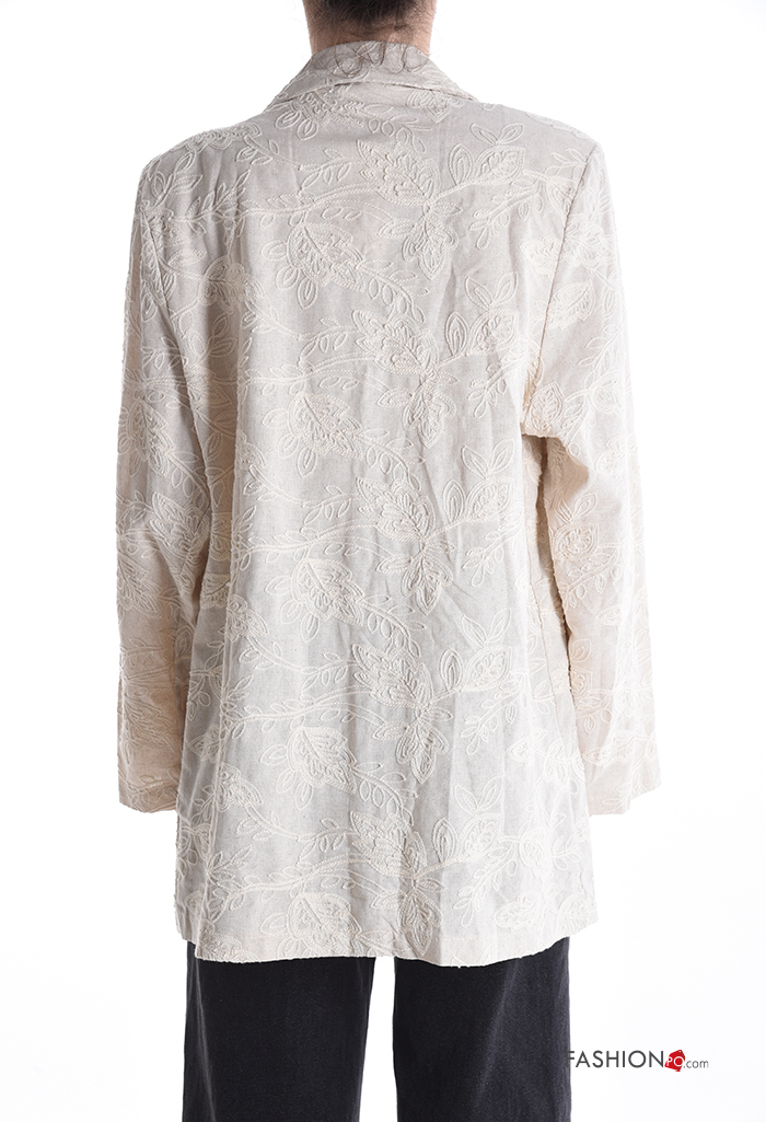 Embroidered oversized long sleeve Linen Blazer with buttons without lining