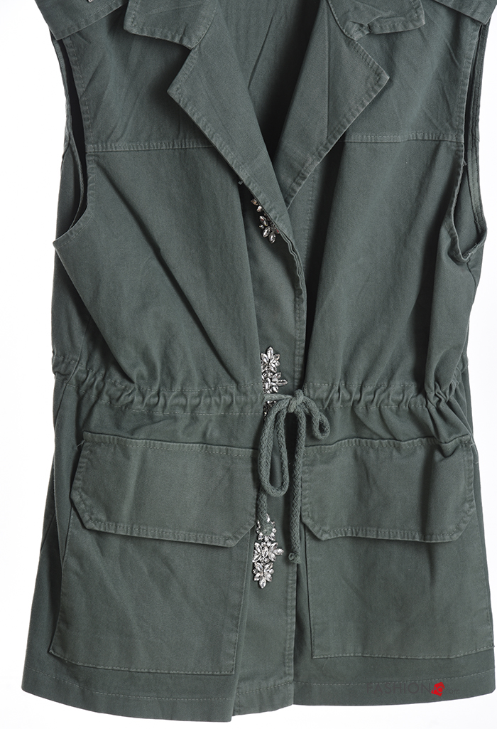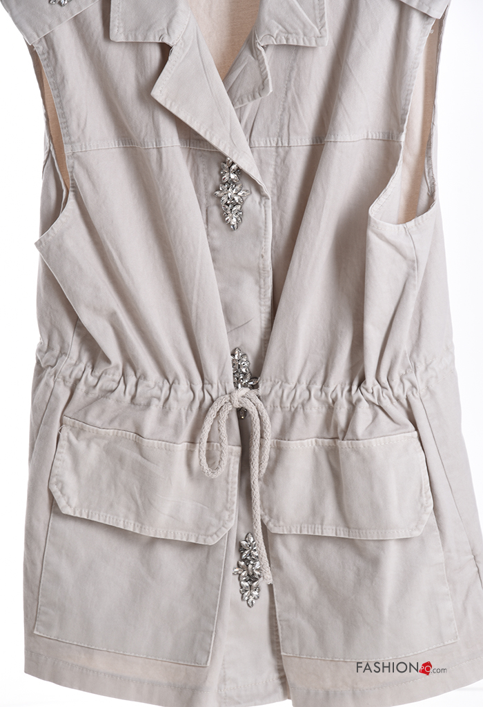 sleeveless with collar Cotton Gilet with pockets with drawstring without lining with buttons