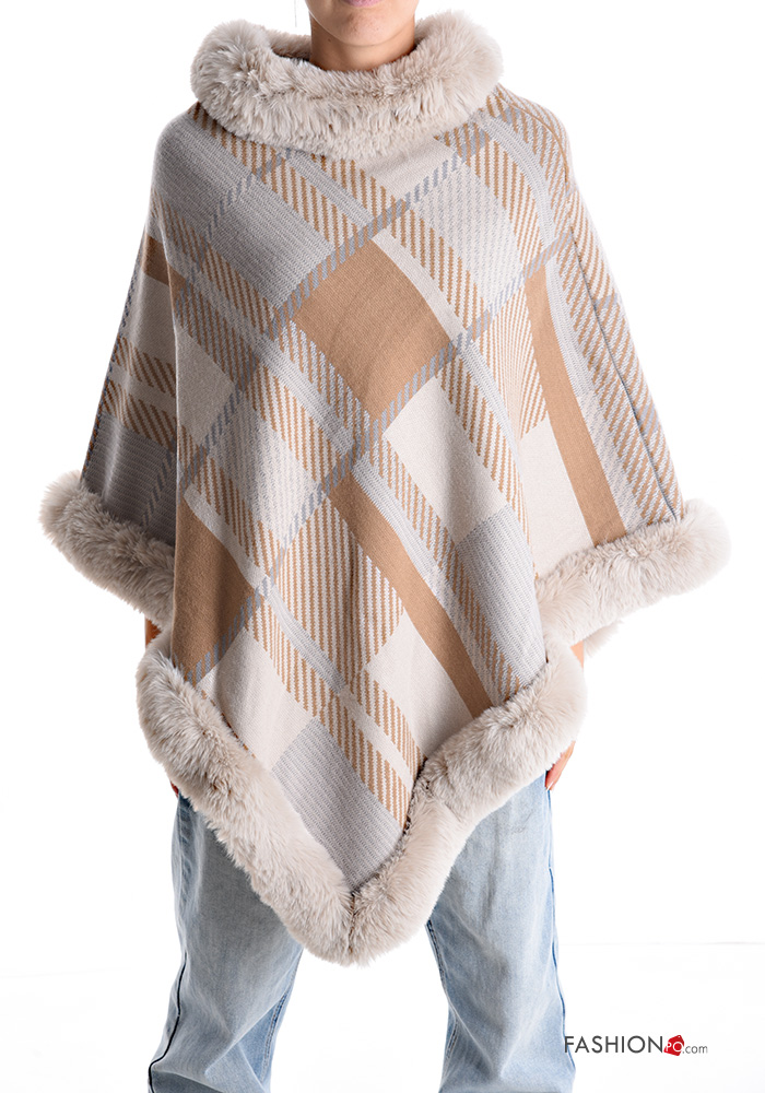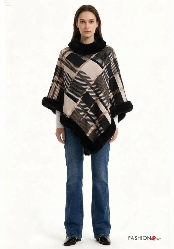 Home > Clothing > Coats & Jackets > Tartan faux fur Poncho