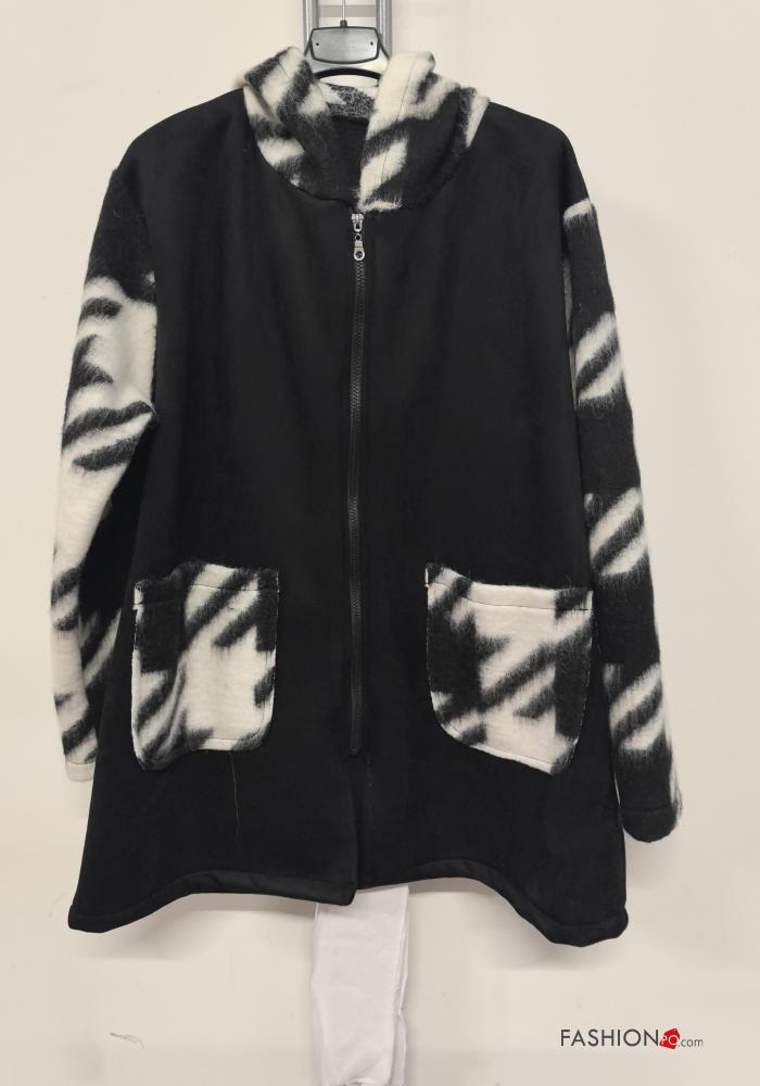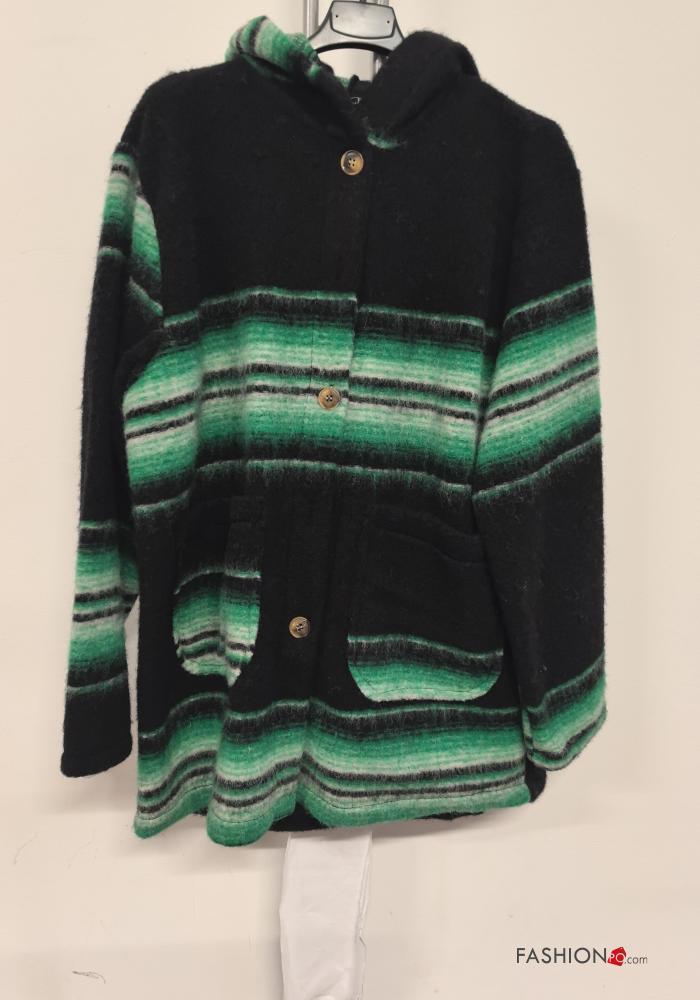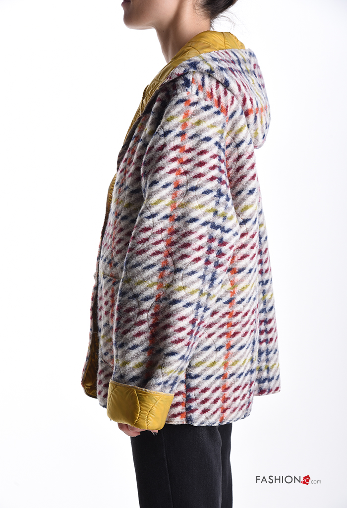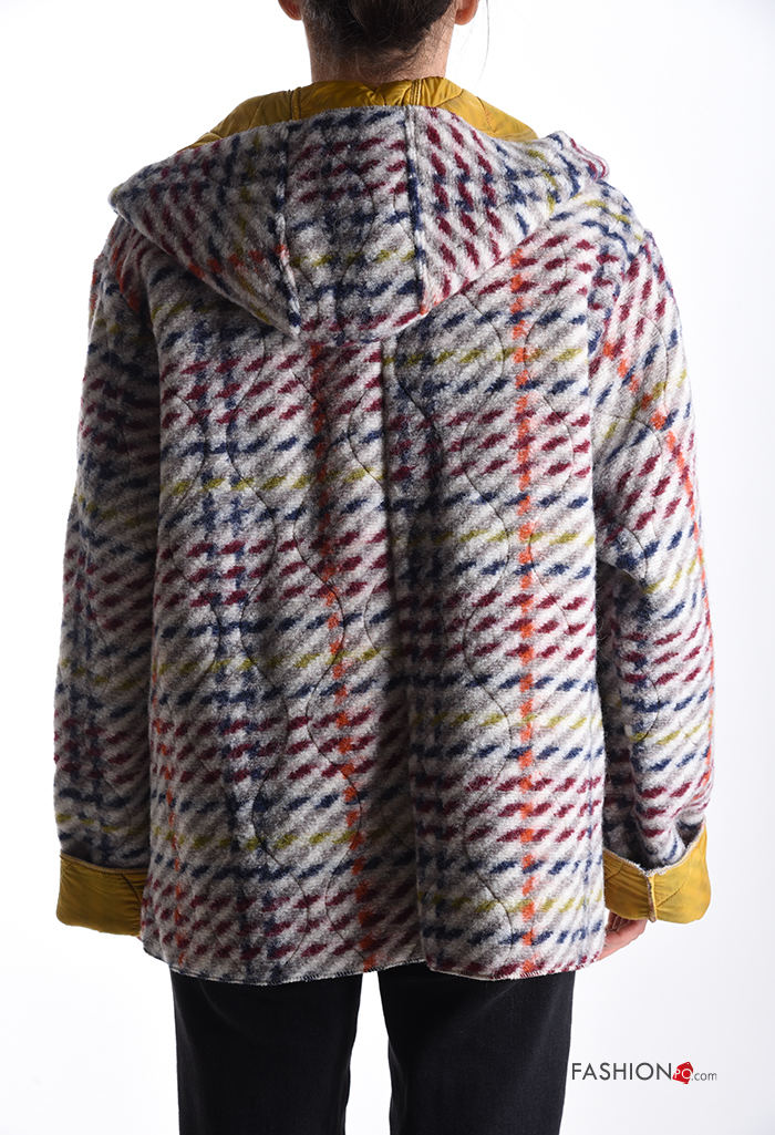 Tartan Wool Mix Coat with lining with hood with buttons with pockets