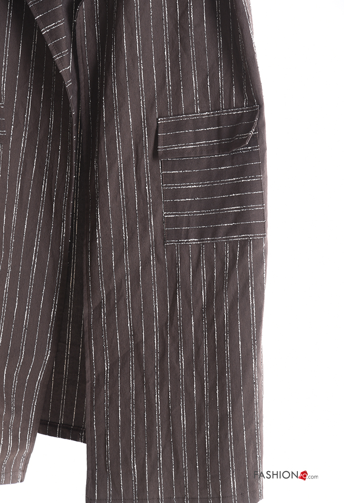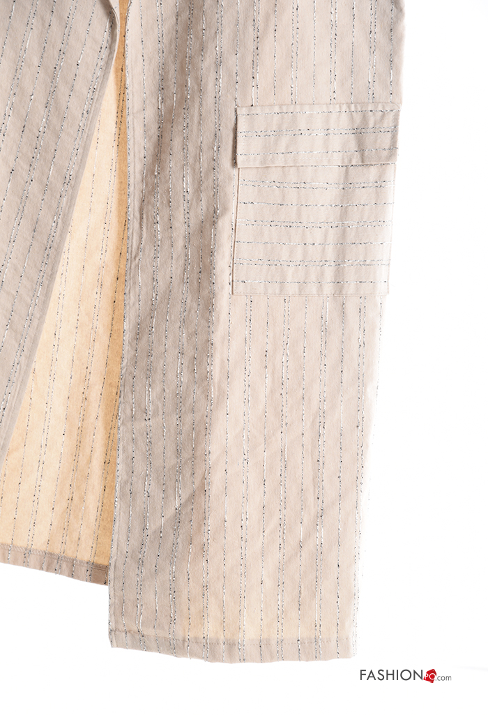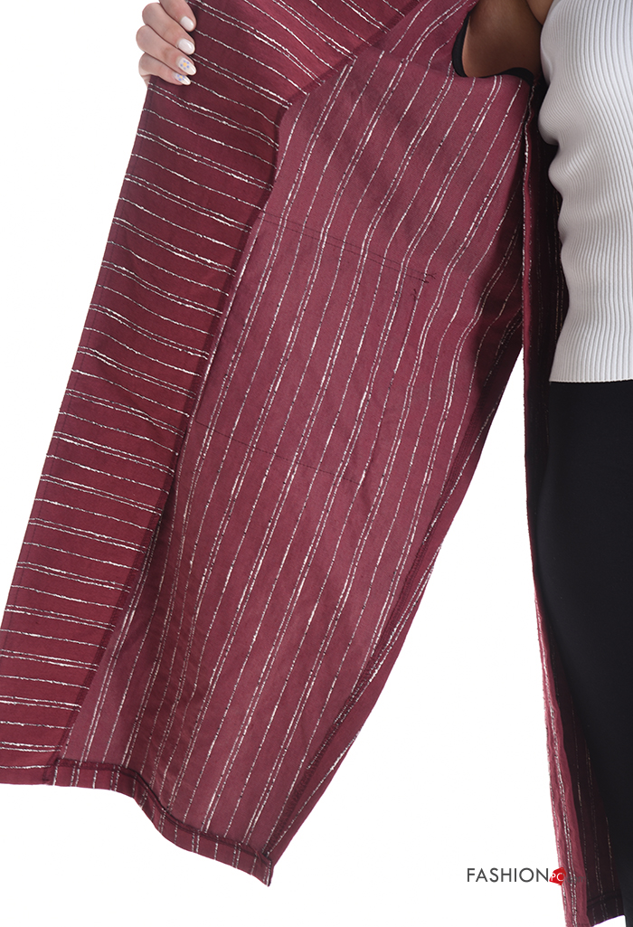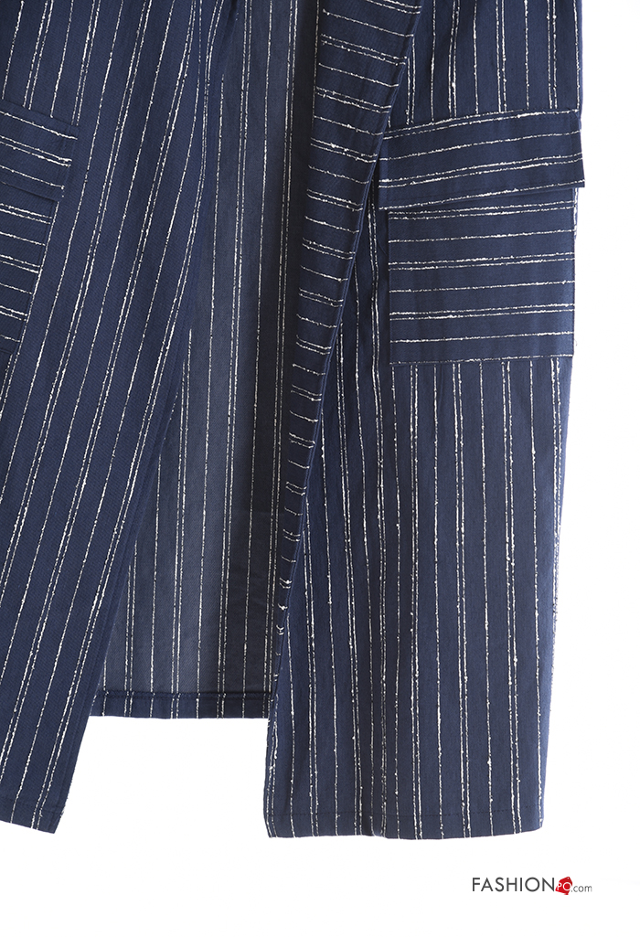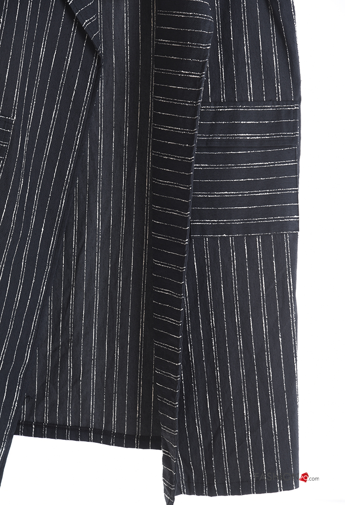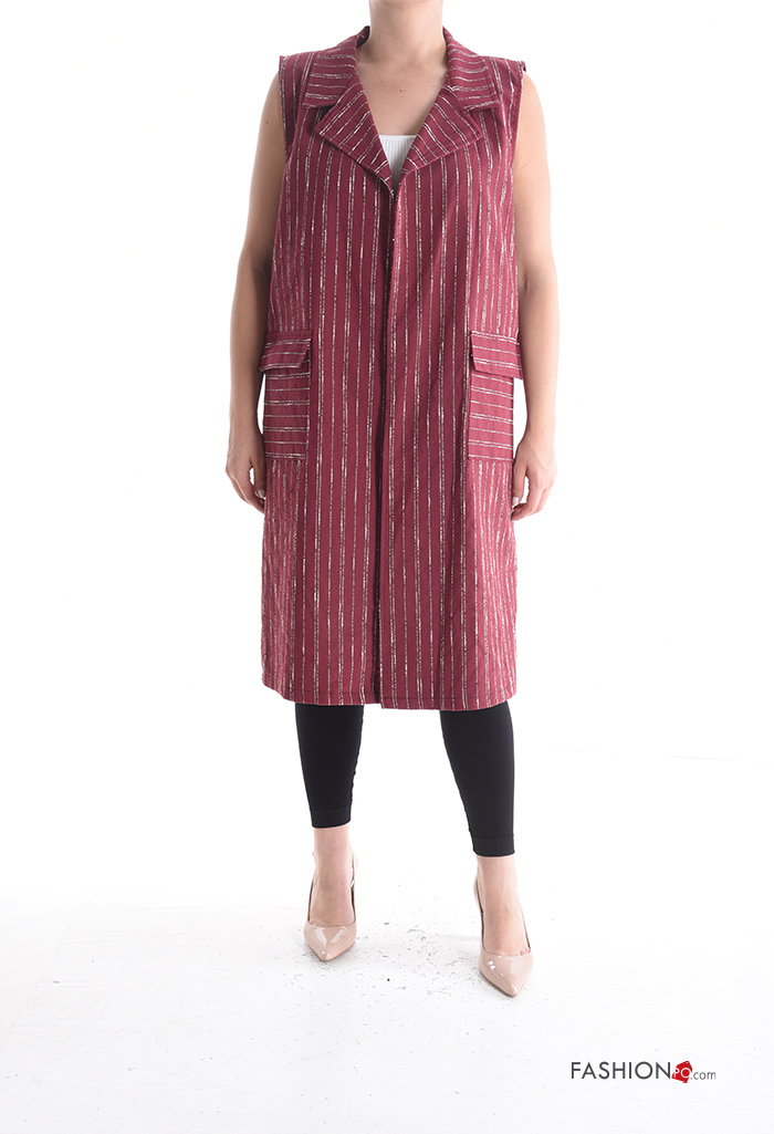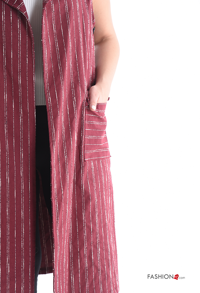 Striped with collar Cotton Gilet without lining with split with pockets