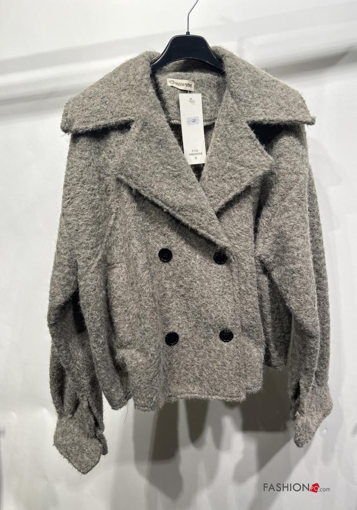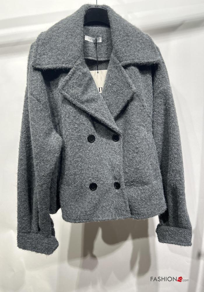 long sleeve Wool Mix Coat with buttons without lining with pockets