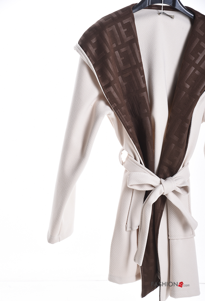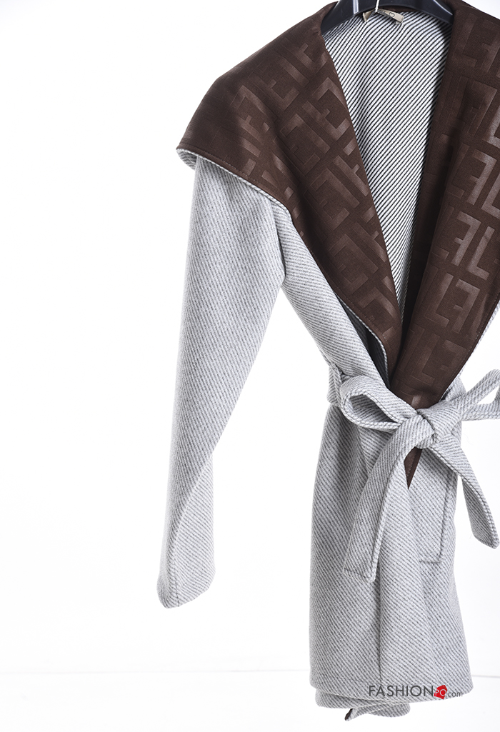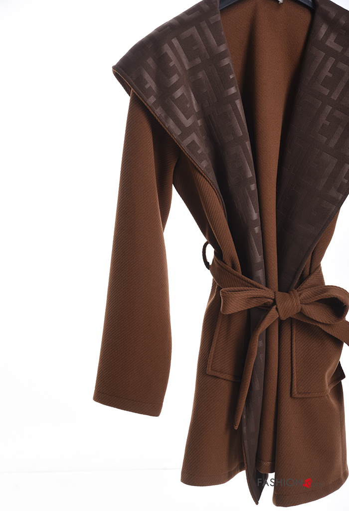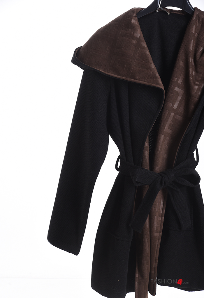 Home > Clothing > Coats & Jackets > long sleeve Wool Mix Coat with hood with fabric belt without lining with pockets