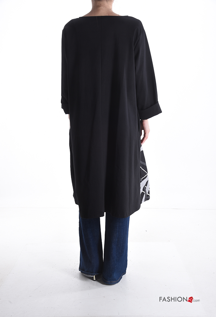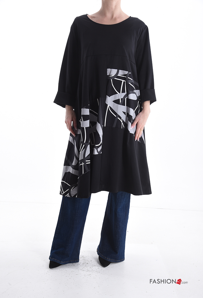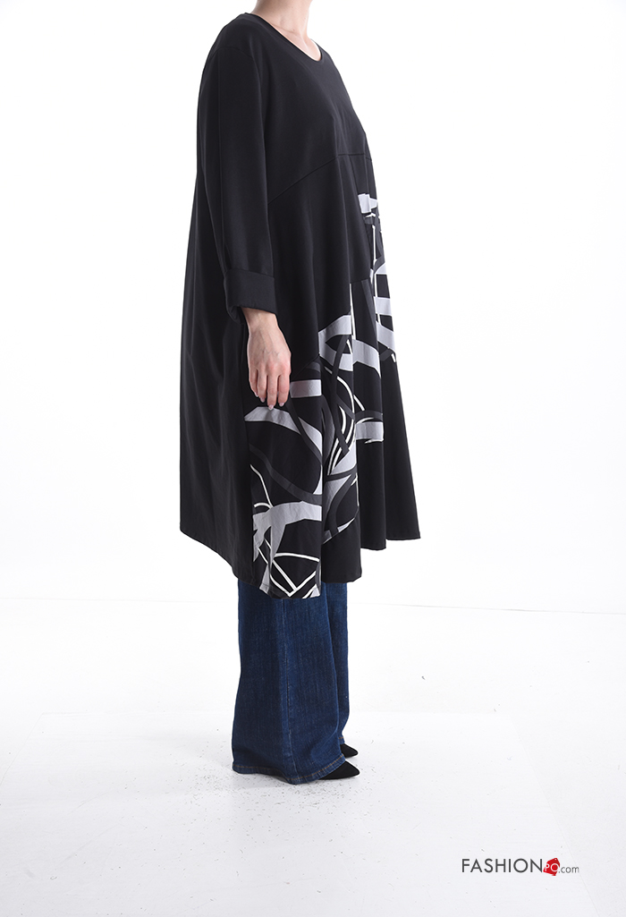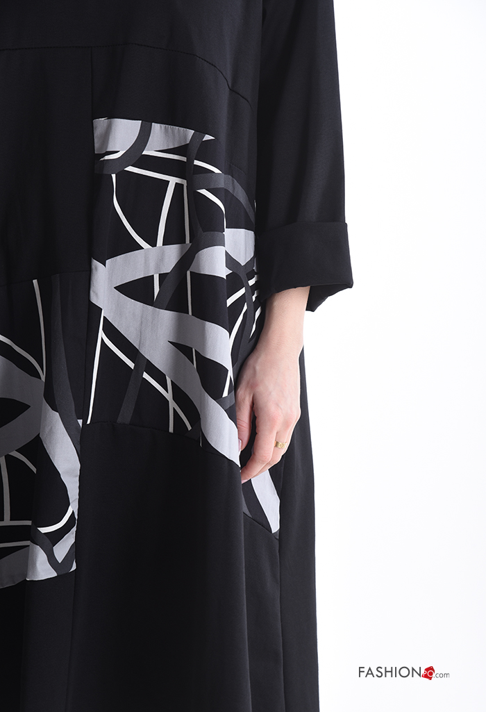 Home > Clothing > Dresses > Abstract print long sleeve Cotton Dress with pockets