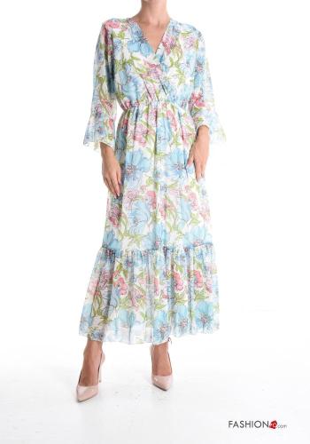 Home > Clothing > Dresses > Floral long sleeve chiffon Dress with flounces with elastic with v-neck