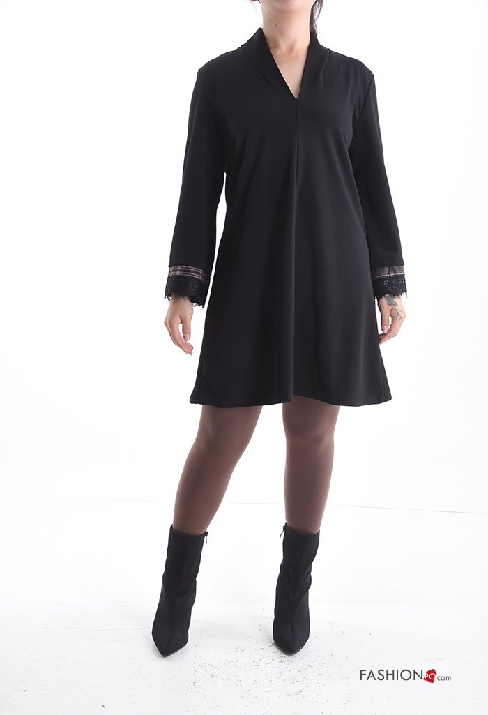 Home > Clothing > Dresses > long sleeve mini lace trim Dress Rollneck