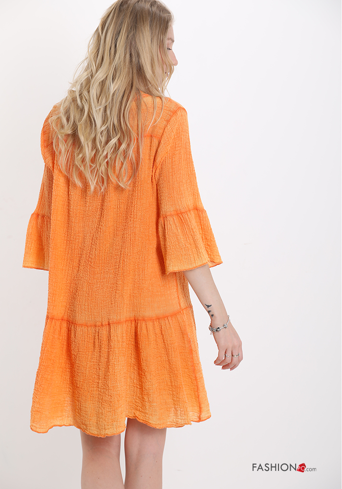 Home > Clothing > Dresses > Cotton Dress with flounces with v-neck with buttons