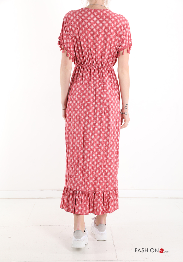 Home > Clothing > Dresses > Geometric pattern lace Dress with flounces with v-neck