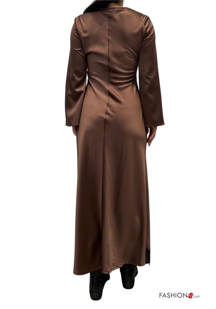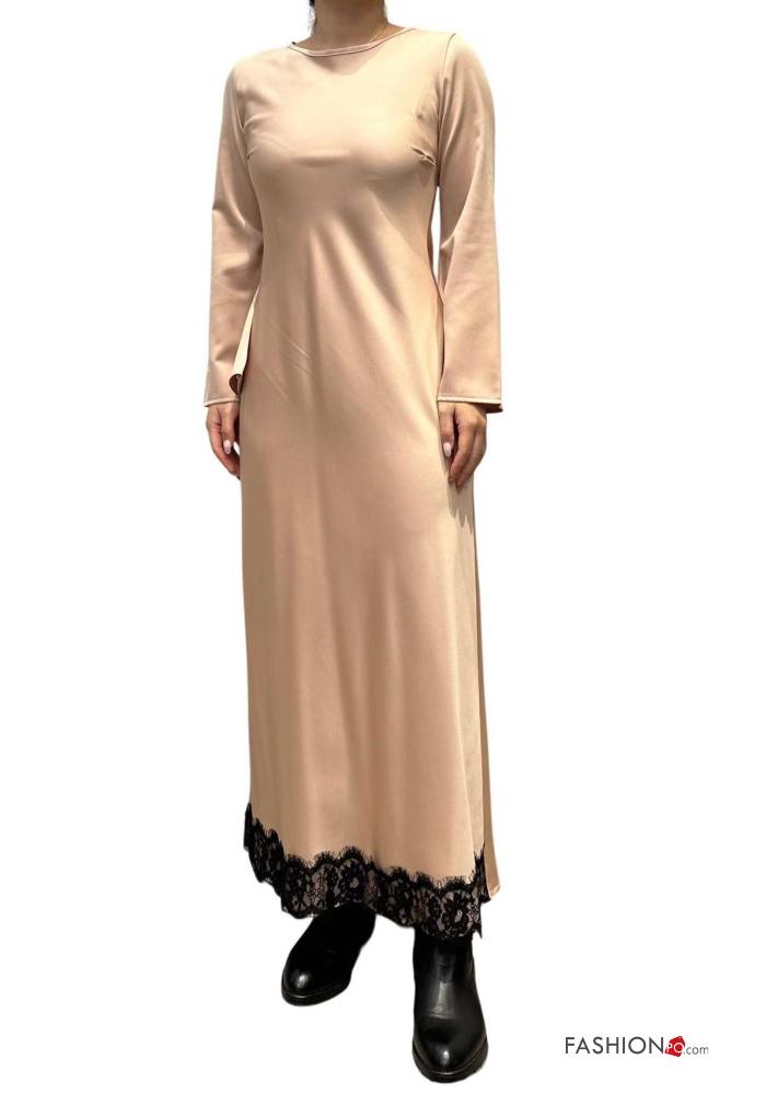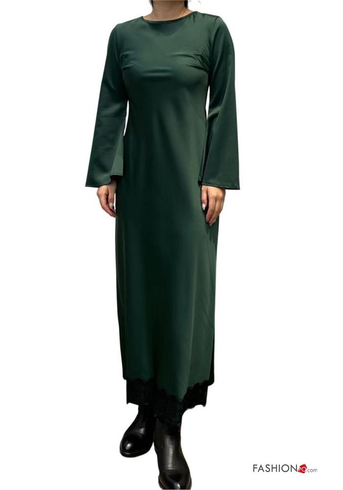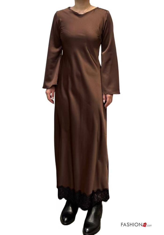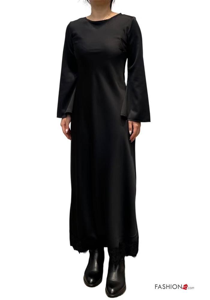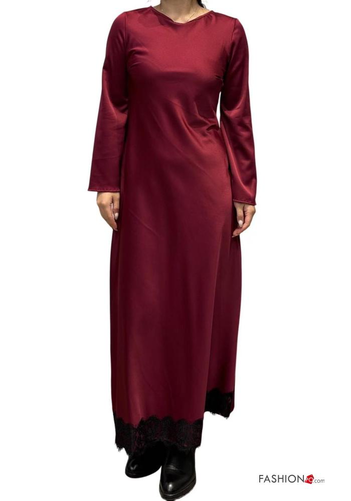 Home > Clothing > Dresses > satin lace trim crew neck long long sleeve Dress