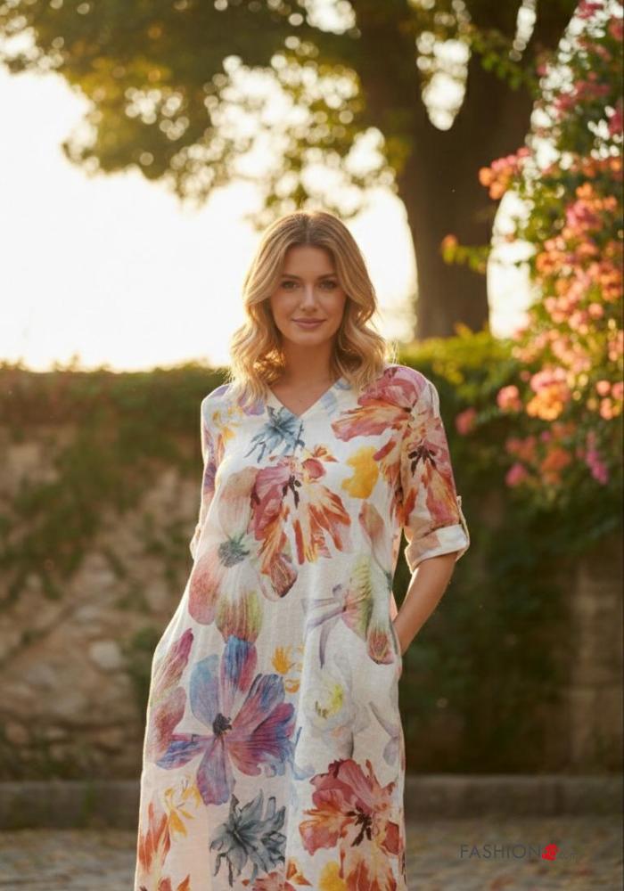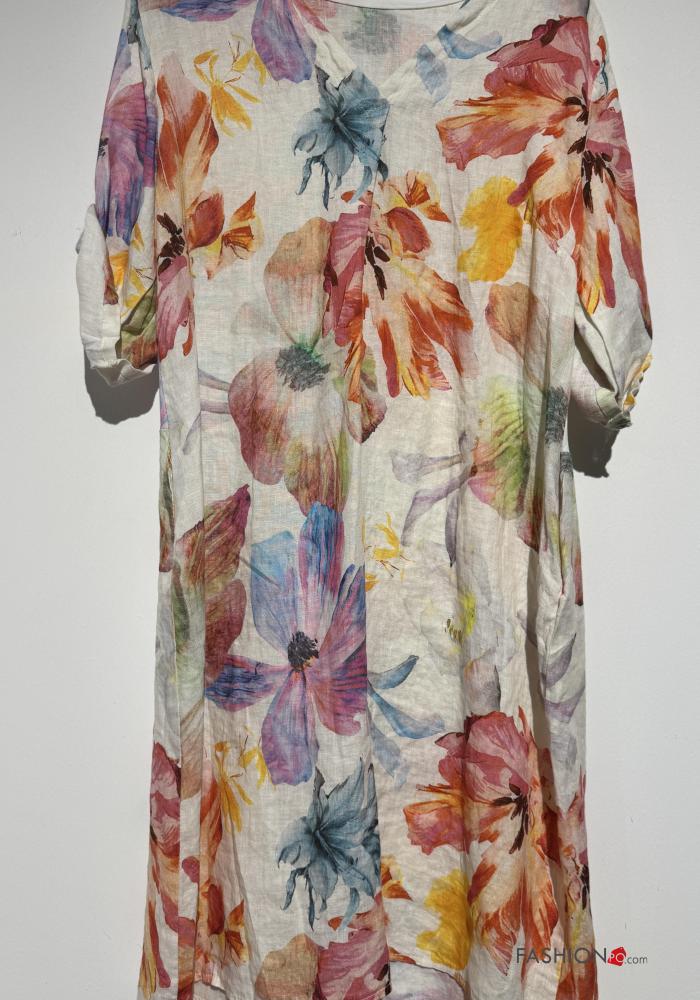 Home > Clothing > Dresses > Floral Linen Dress with v-neck