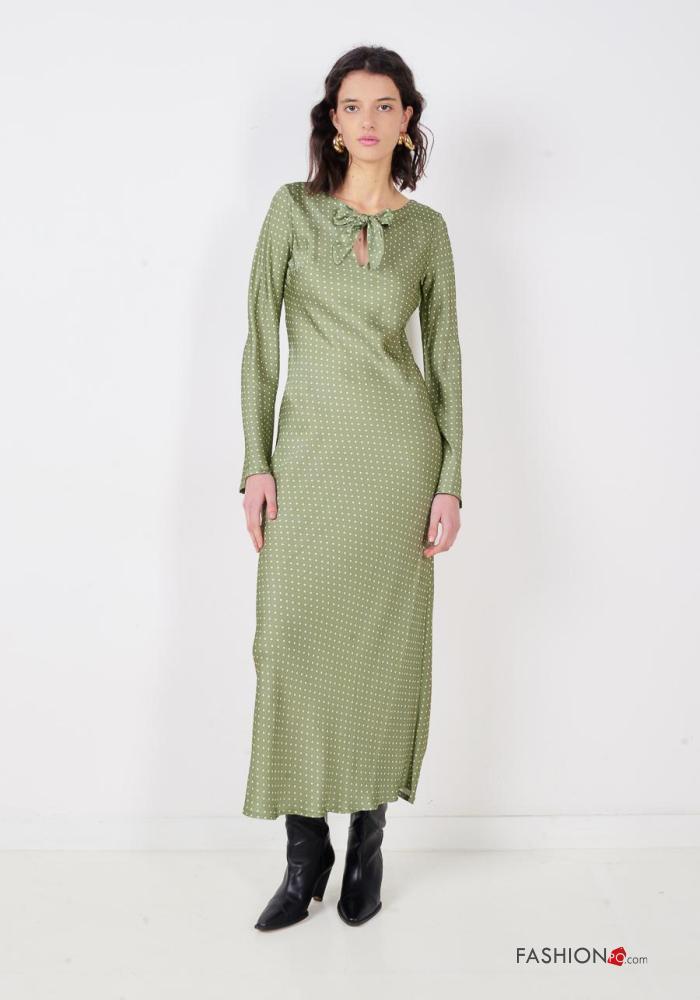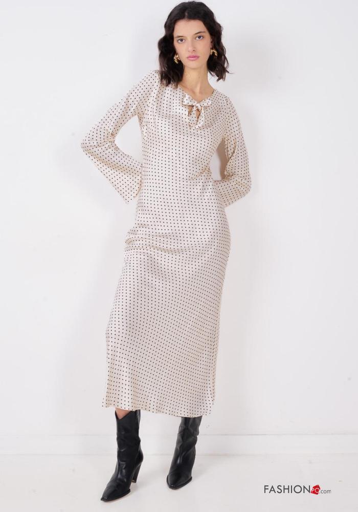 Home > Clothing > Dresses > Polka-dot long sleeve Dress with bow with v-neck