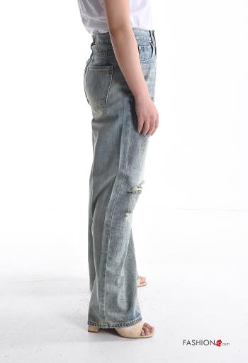 high waist ripped wide leg denim Cotton Jeans with buttons with zip with pockets