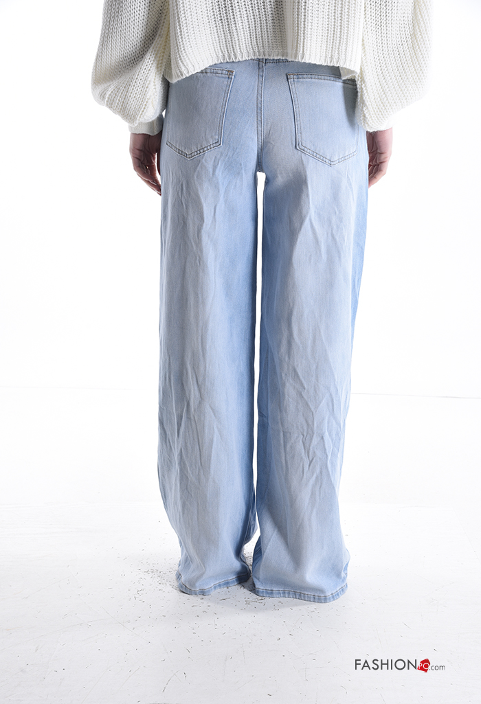 Home > Clothing > Jeans > Patterned wide leg Cotton Jeans with buttons with zip with pockets