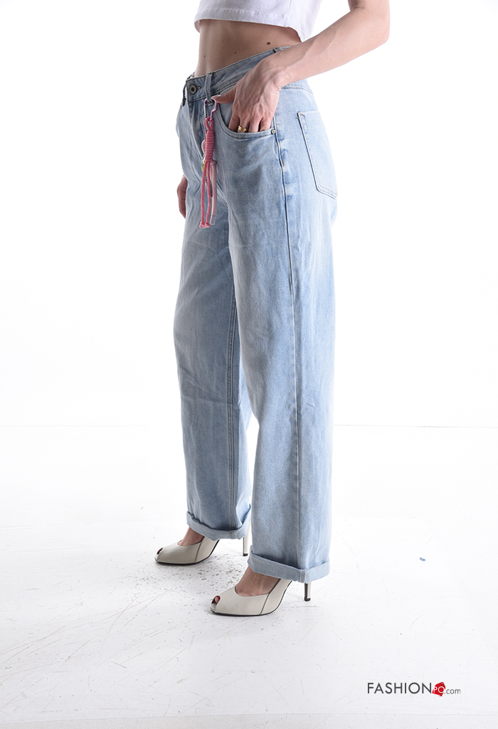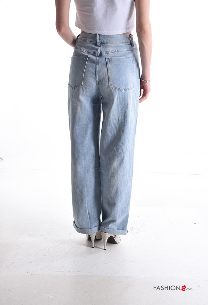 denim long Cotton Jeans with buttons with zip
