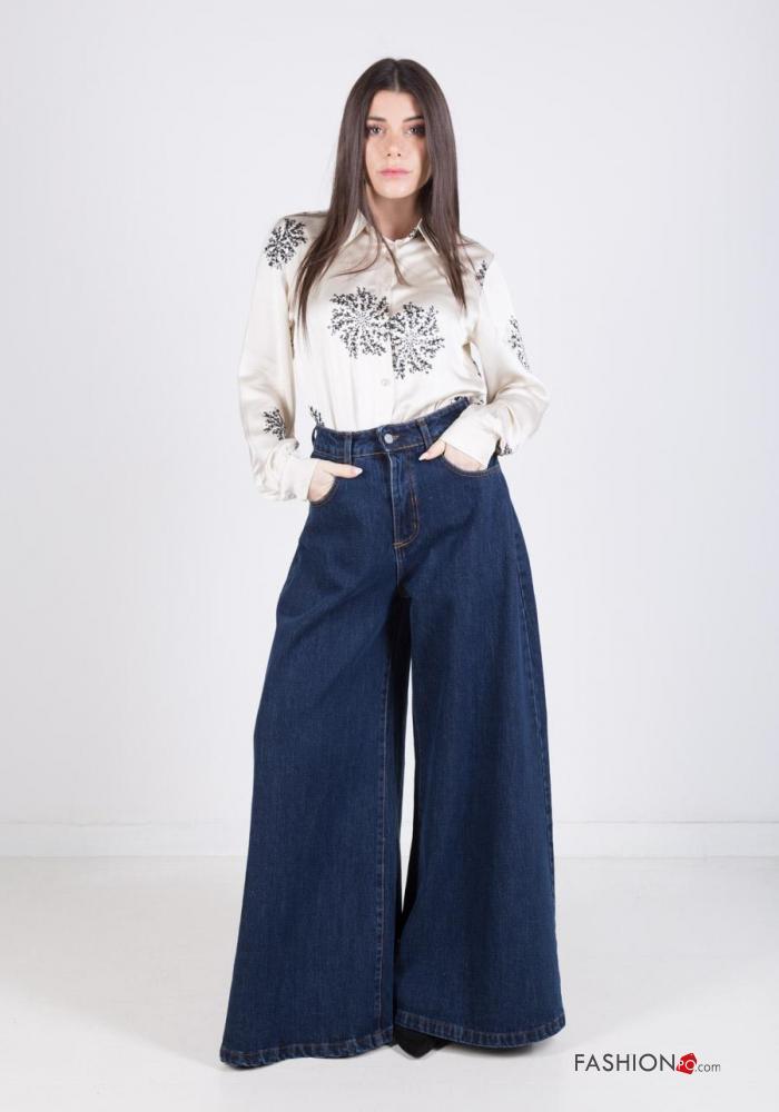 Home > Clothing > Jeans > wide leg Cotton Jeans with pockets