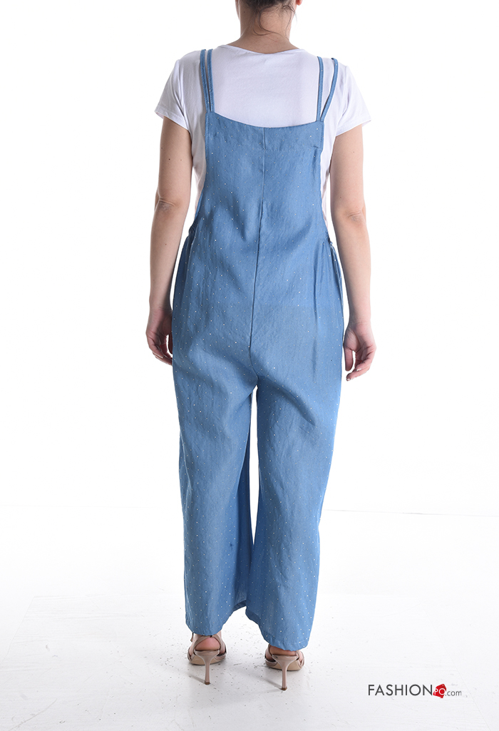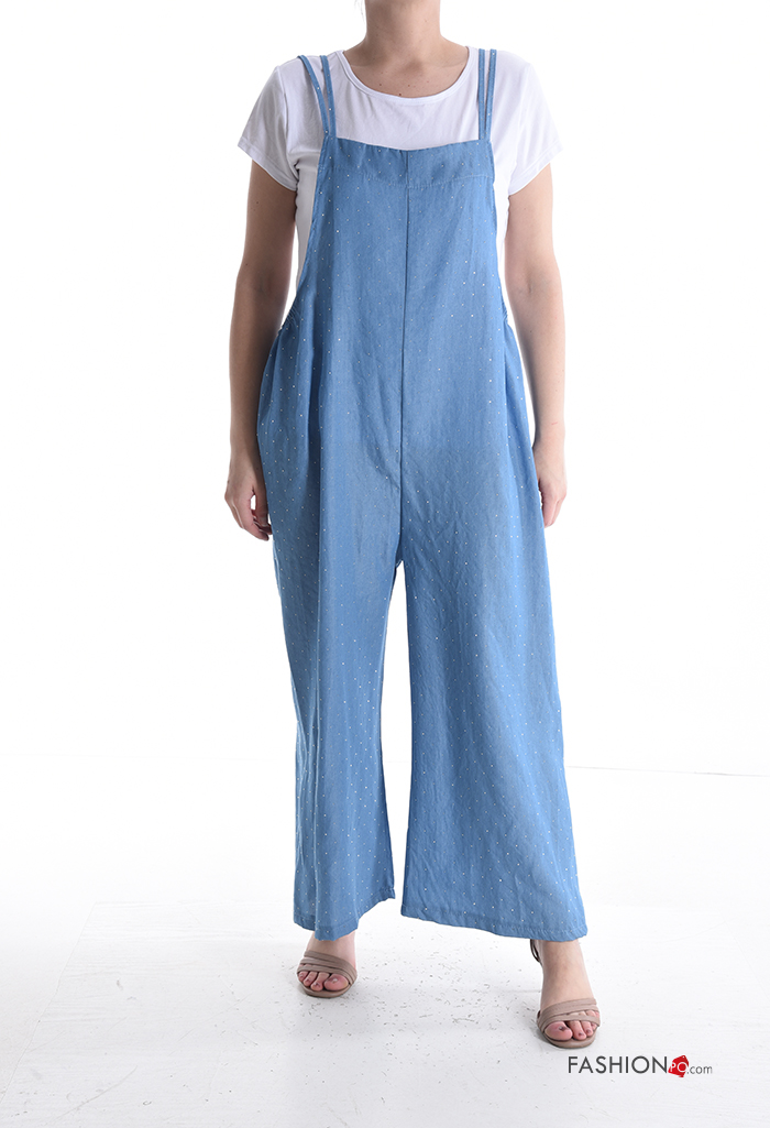 wide leg Cotton Jumpsuit with rhinestones with T-shirt