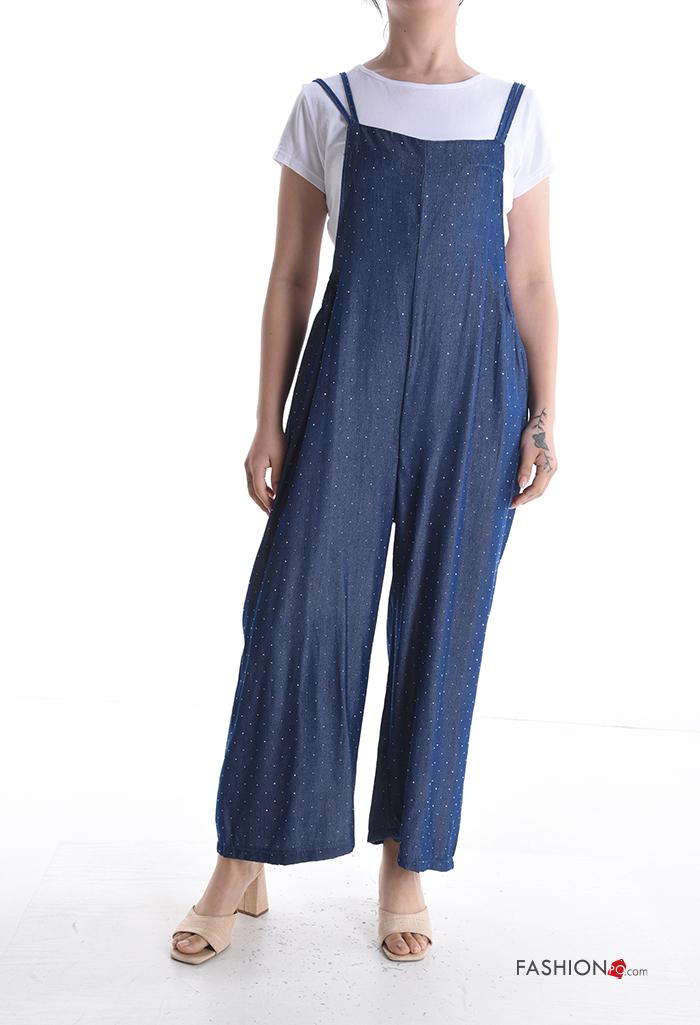 Home > Clothing > Jumpsuits & Dungarees > wide leg Cotton Jumpsuit with rhinestones with T-shirt