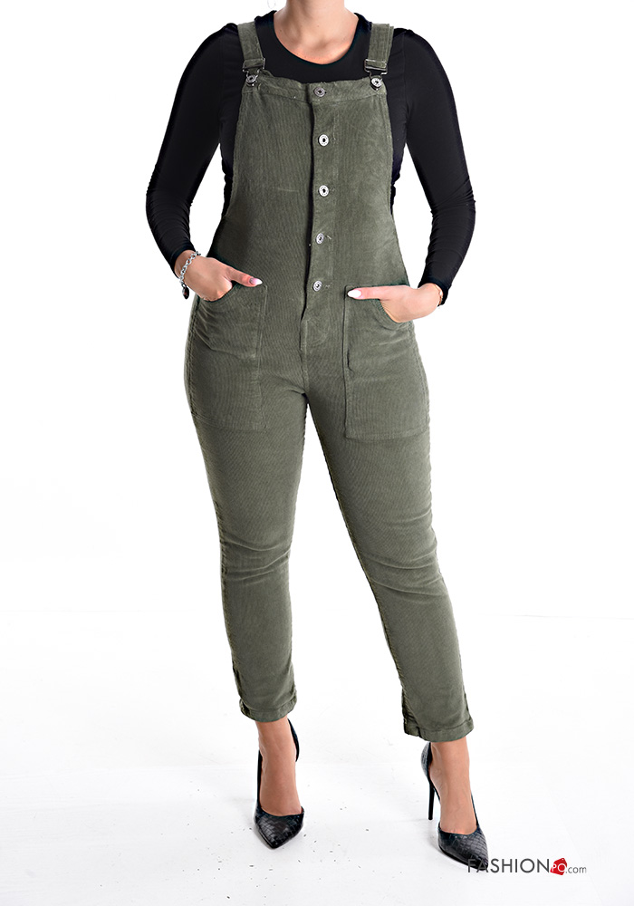 Velvet Ribbed Cotton Dungaree with buttons with pockets