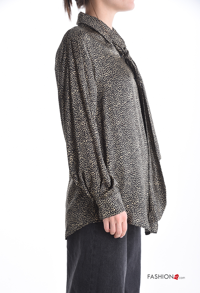 Abstract print long sleeve with collar Shirt with buttons with scarf