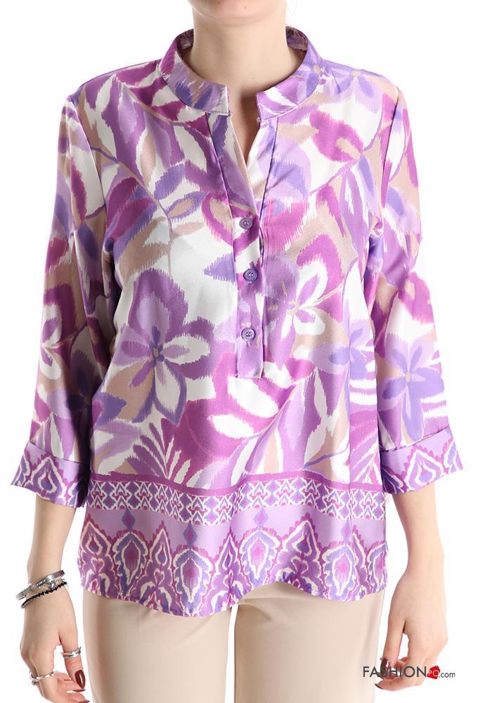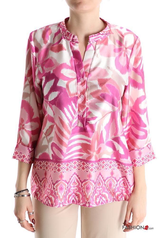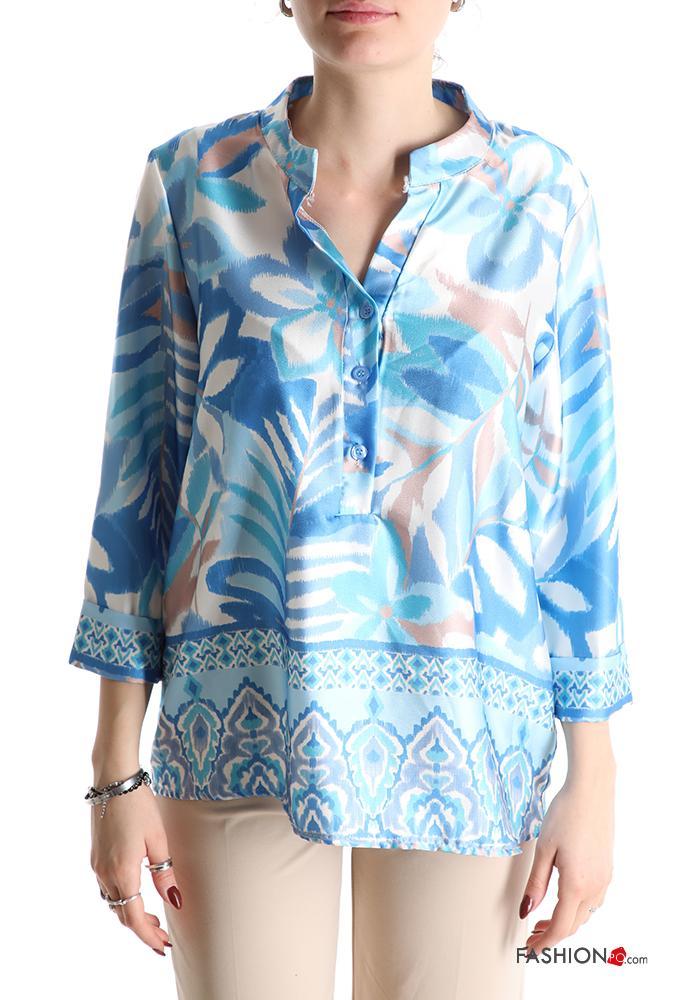 Blouse with buttons 3/4 sleeve with v-neck