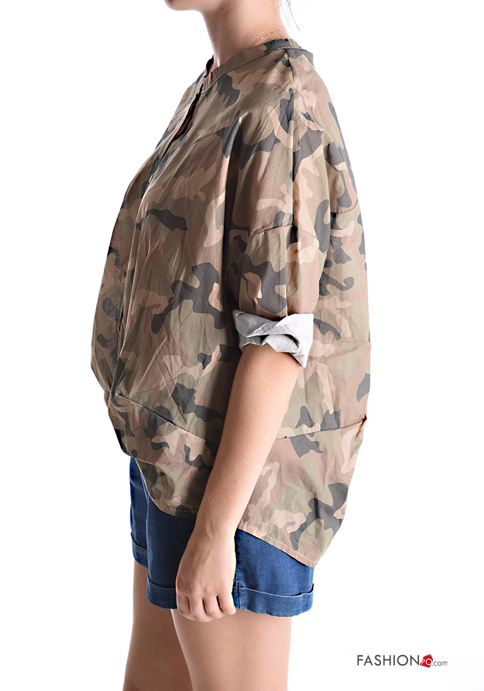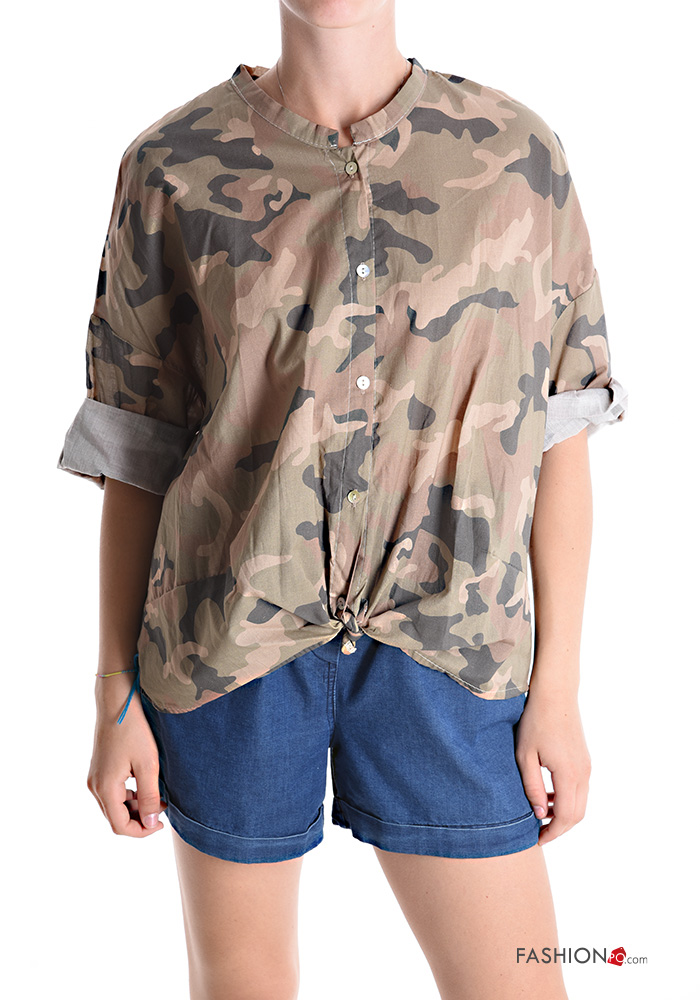 Home > Clothing > Shirts & Blouses > Camouflage print Cotton Shirt 3/4 sleeve