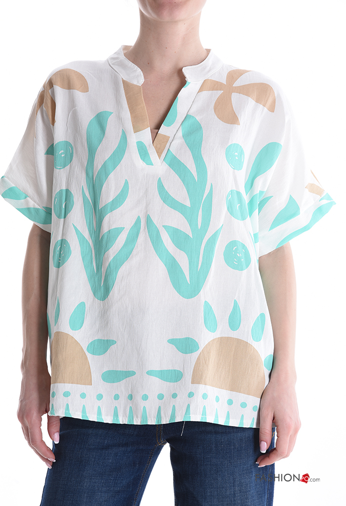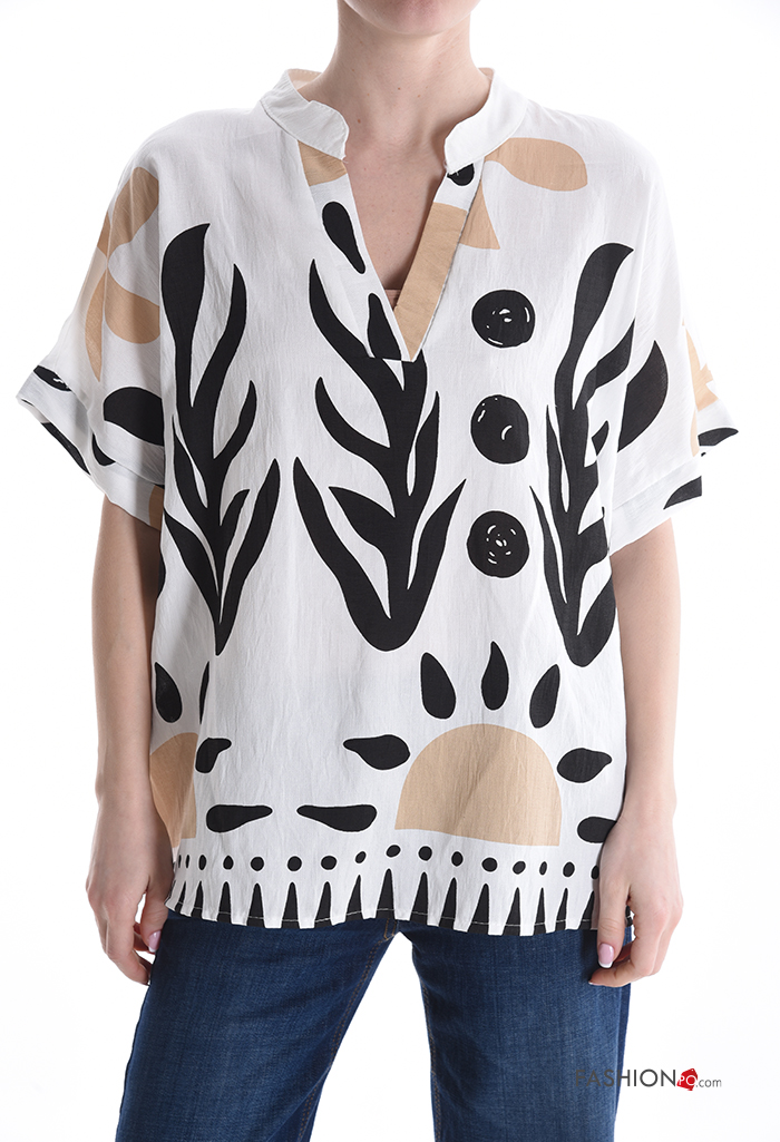 Abstract print short sleeve Blouse