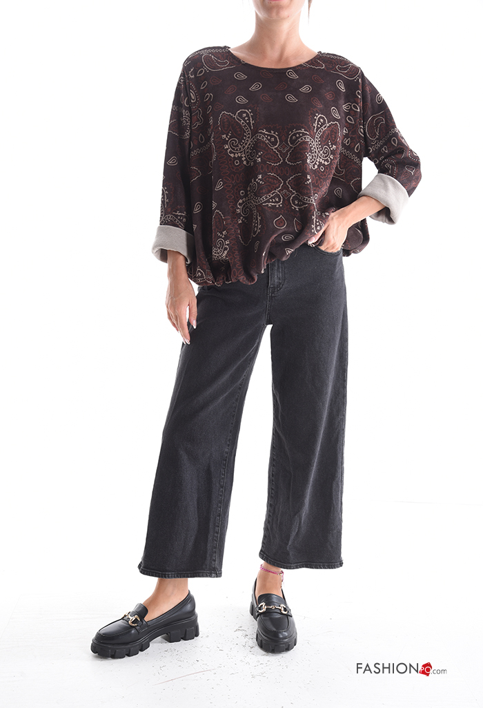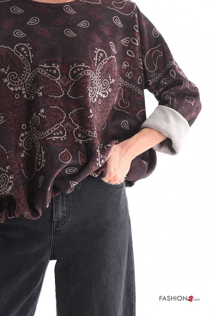 Paisley-print long sleeve crew neck Blouse