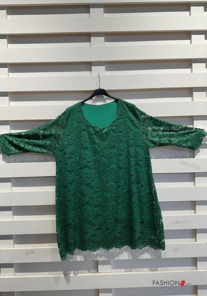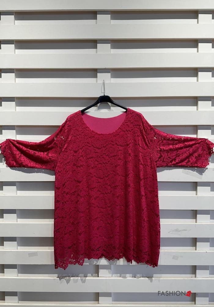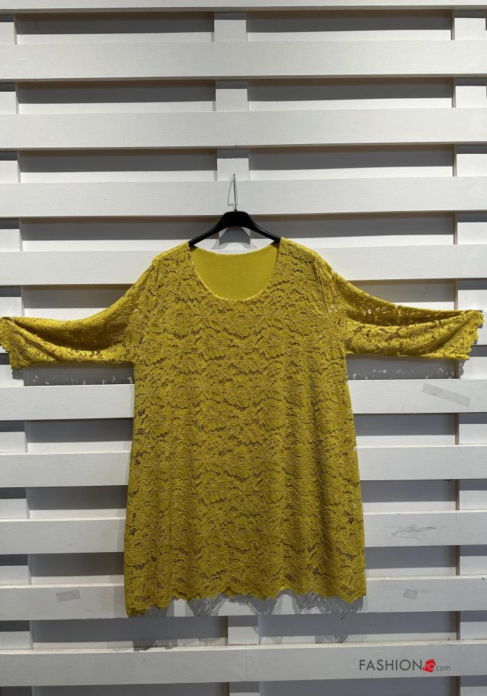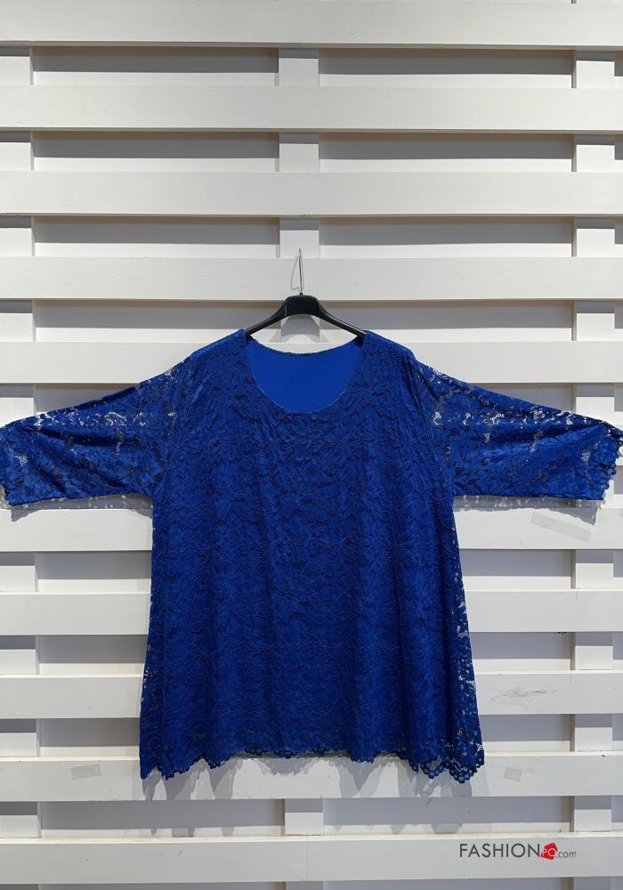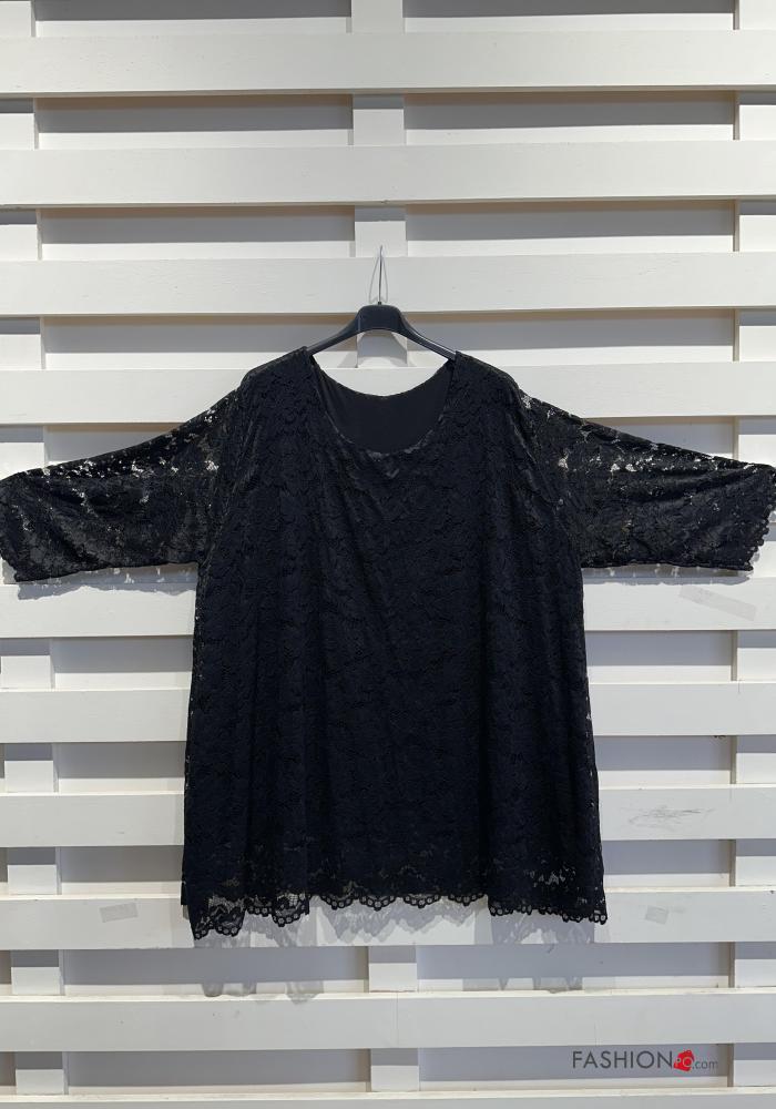 Home > Clothing > Shirts & Blouses > lace trim crew neck oversized Blouse with lining 3/4 sleeve