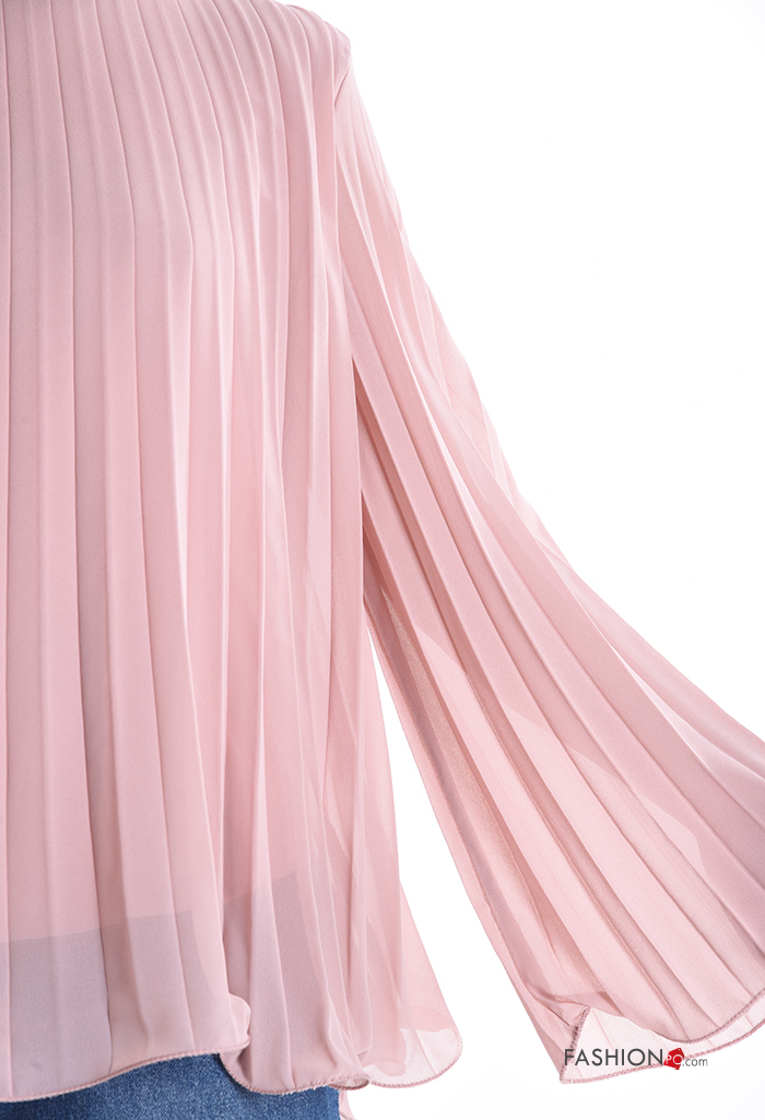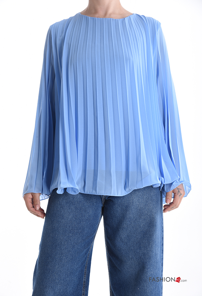 Home > Clothing > Shirts & Blouses > crew neck chiffon extra long sleeve pleated Blouse