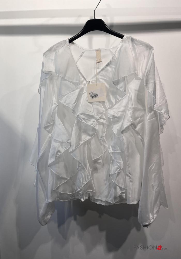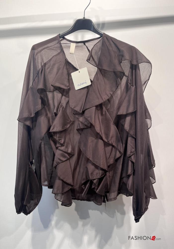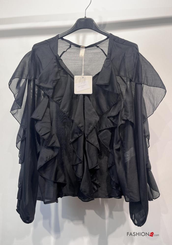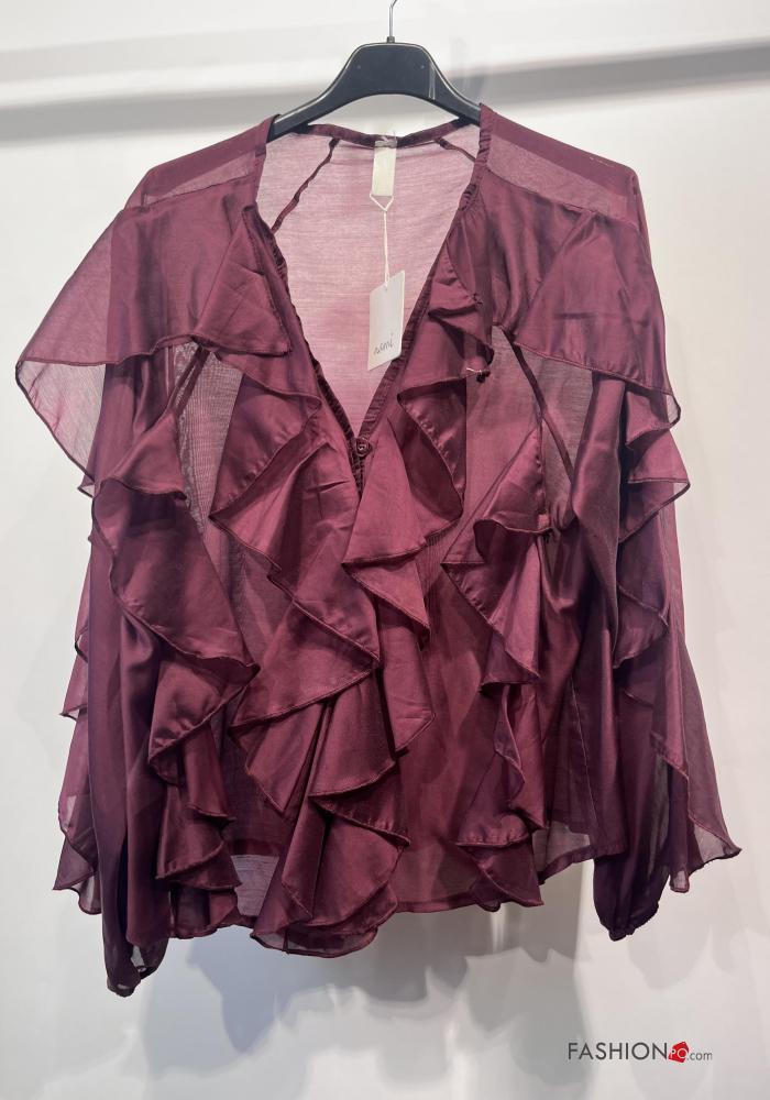 long sleeve Shirt with flounces with v-neck with buttons