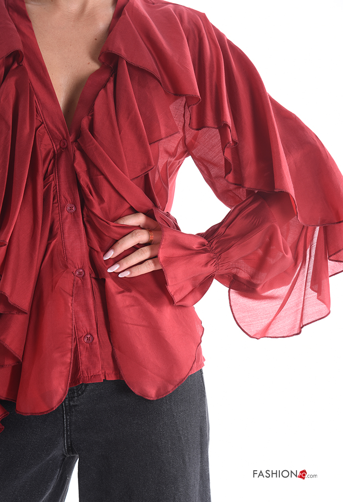 long sleeve Shirt with flounces with v-neck with buttons