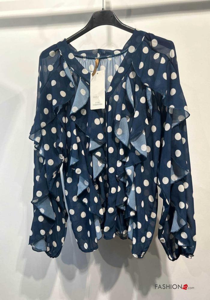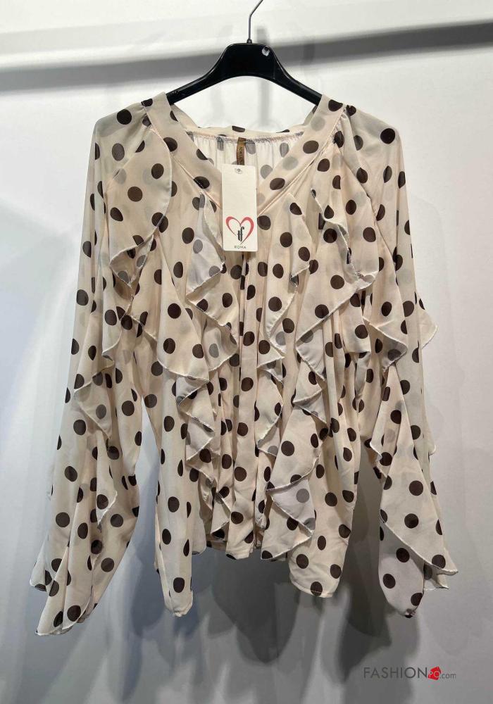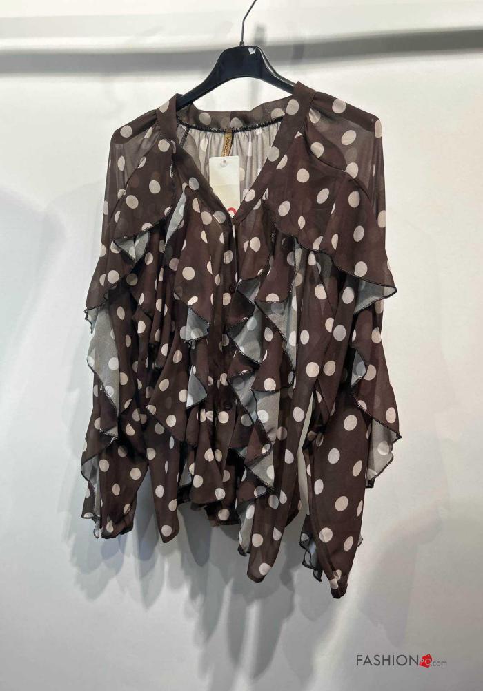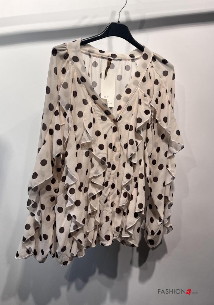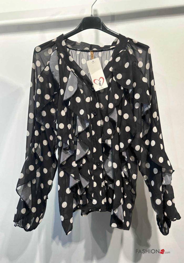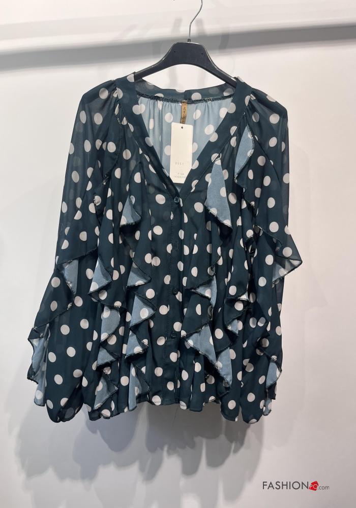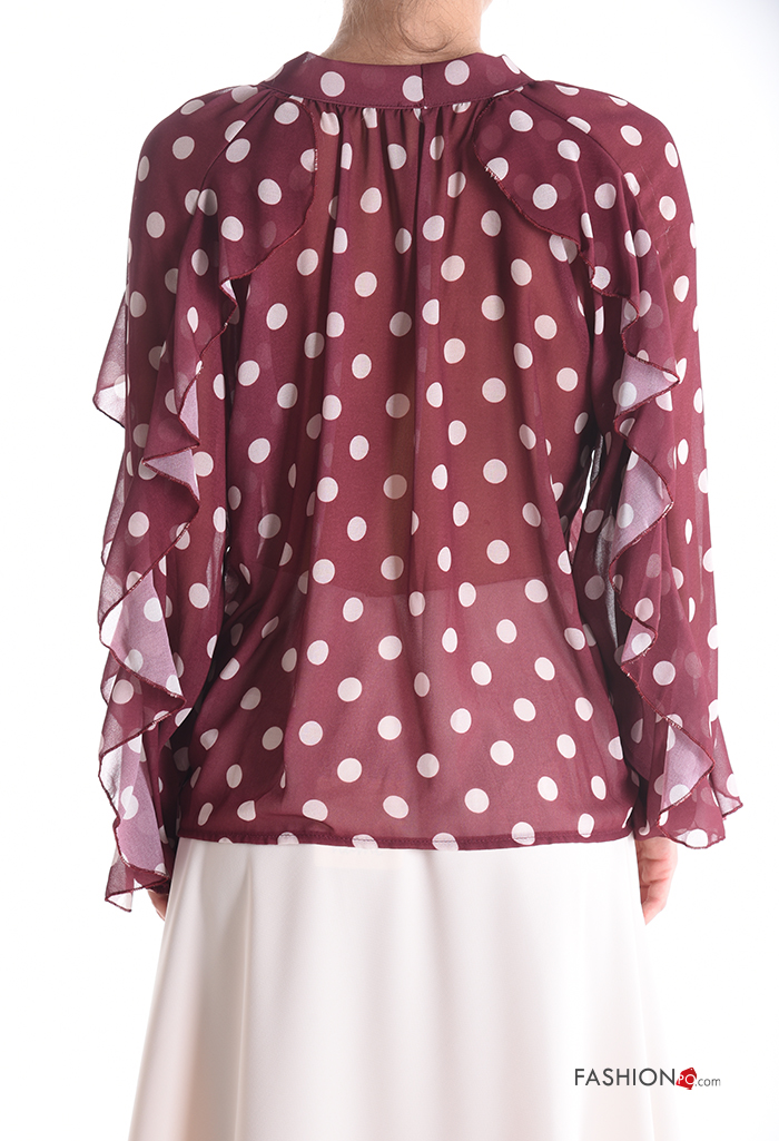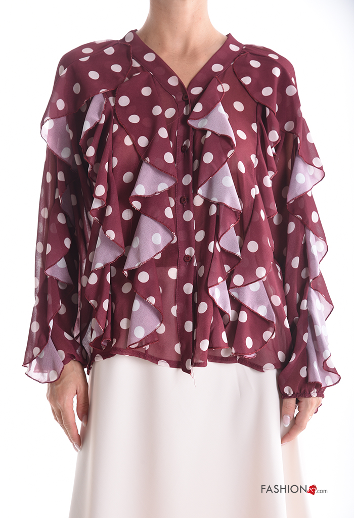 Polka-dot long sleeve Shirt with flounces with buttons