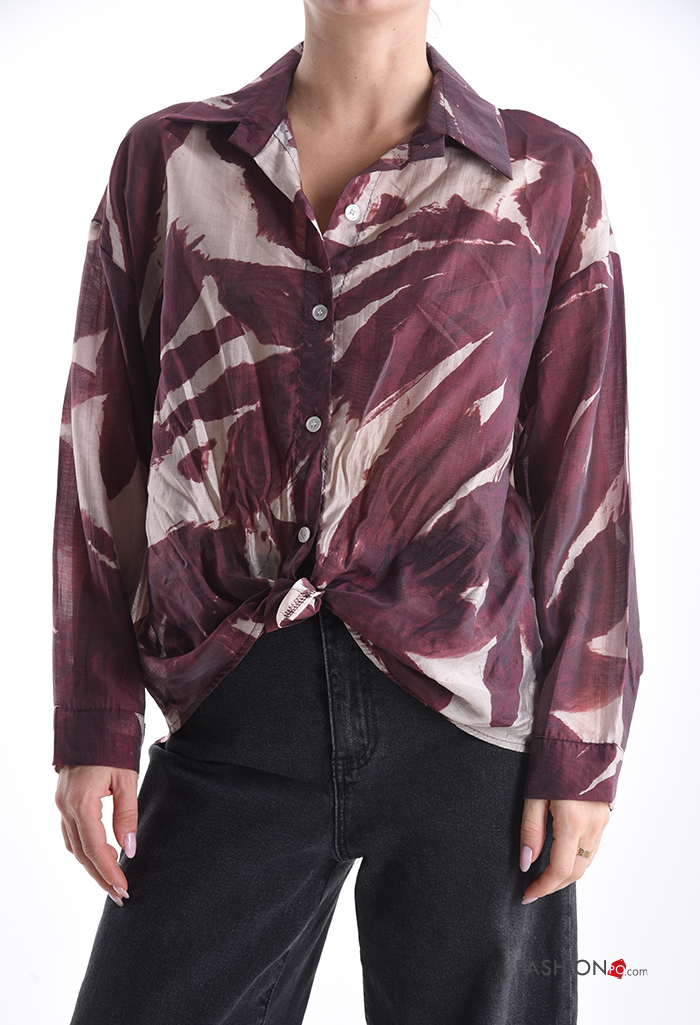 Home > Clothing > Shirts & Blouses > Abstract print long sleeve with collar Shirt with buttons