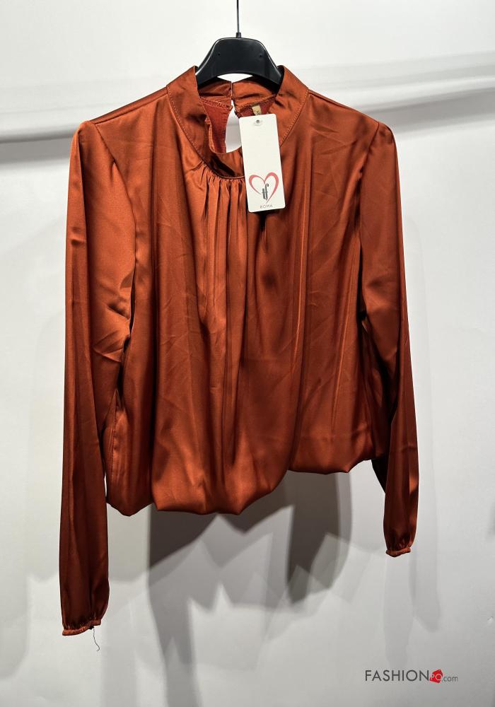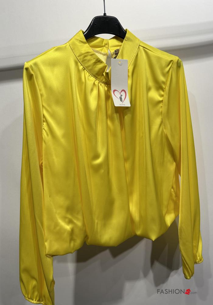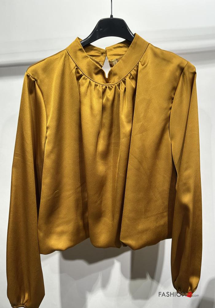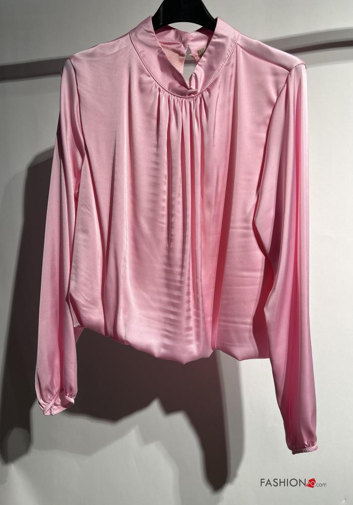satin long sleeve Cotton Blouse Rollneck with elastic